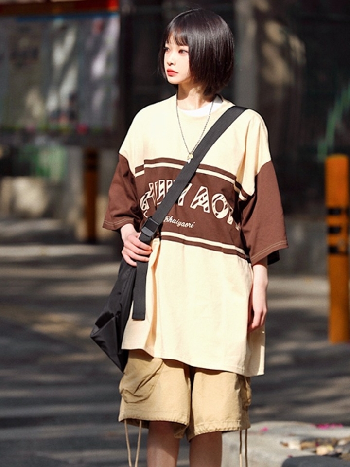 这款t恤是简约的风格,宽松的版型,时尚百搭,胸前的字母印花,很有个性,搭配牛仔裤或者短裤都很好看。