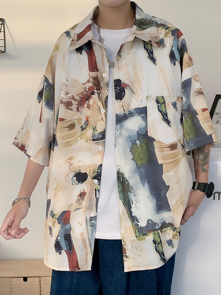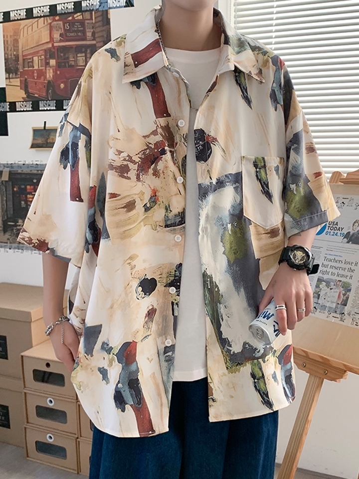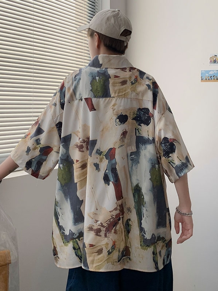 一款印满图案的亲子衬衫,犹如一道亮丽的风景,经典的翻领设计,简洁大方,内里撞色包边,呵护宝贝颈部;
