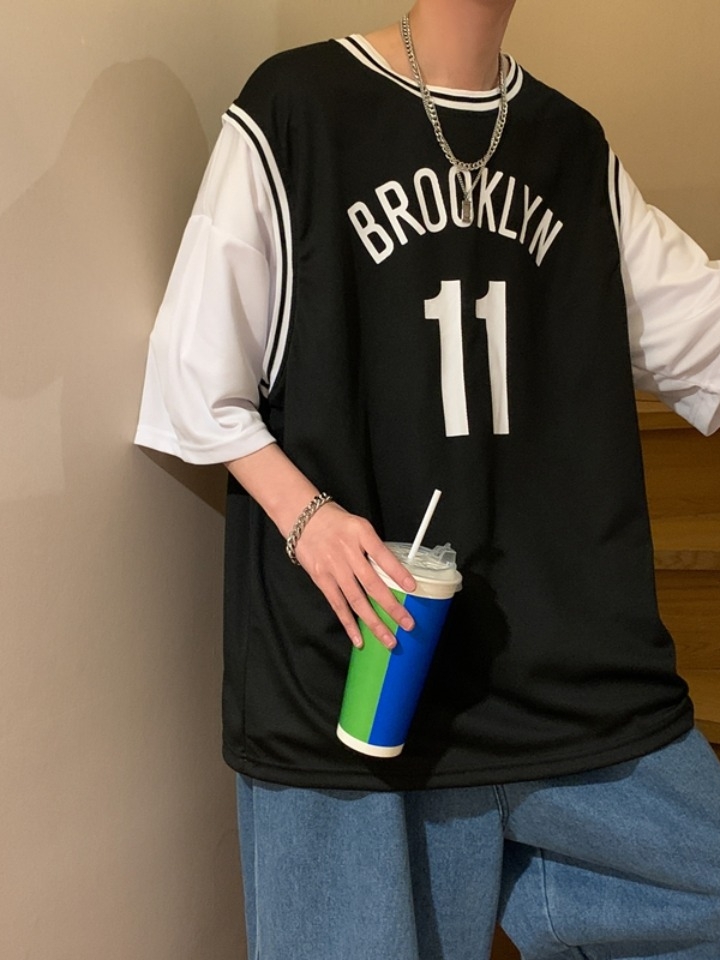 袖口与下摆部位采用了拼接撞色设计,让人误以为内搭了一件,形成一种层次感,从而达到了“假两件”的效果。