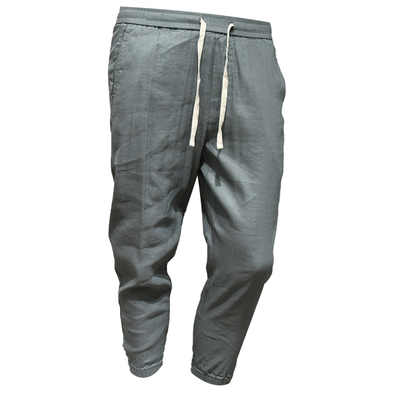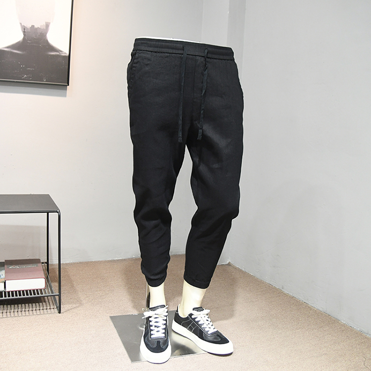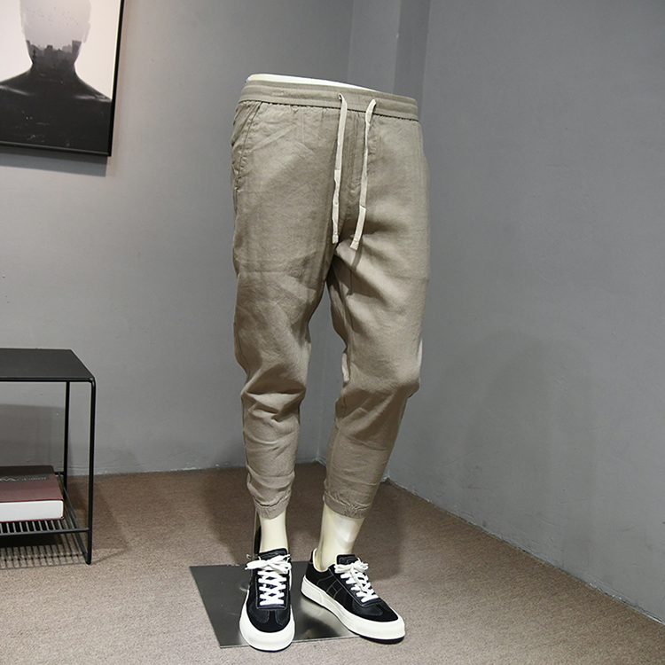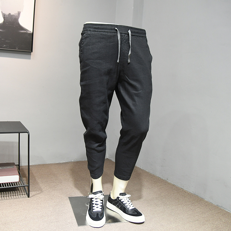 高端冰丝亚麻透气松紧腰休闲裤男九分裤2021年新款百搭夏季束脚裤