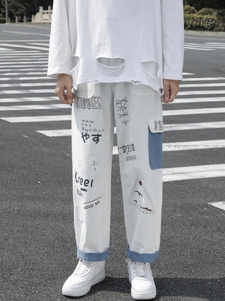 为喜好牛仔的你,打造出这款复古气质十足的涂鸦破洞牛仔裤。天然面面料,清爽抗菌,吸湿透气性好,手感柔软,穿着舒适。