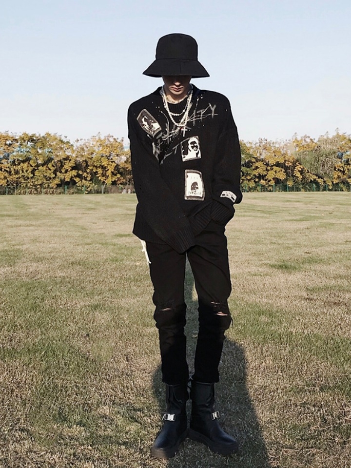 裤子设计很国际范,破洞处很有感觉有一种画龙点睛的意境,特别是他的剪裁修身版型,上身效果很帅,穿上他,你就是街头潮流的风景线!