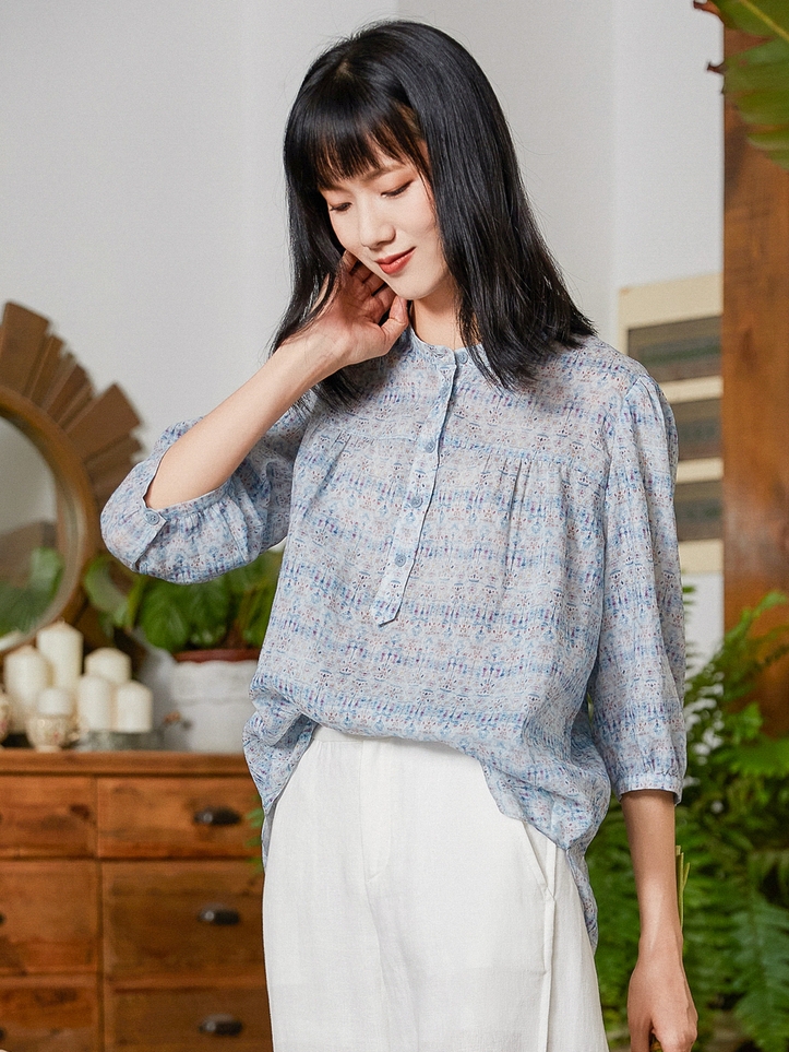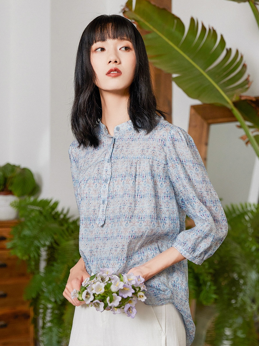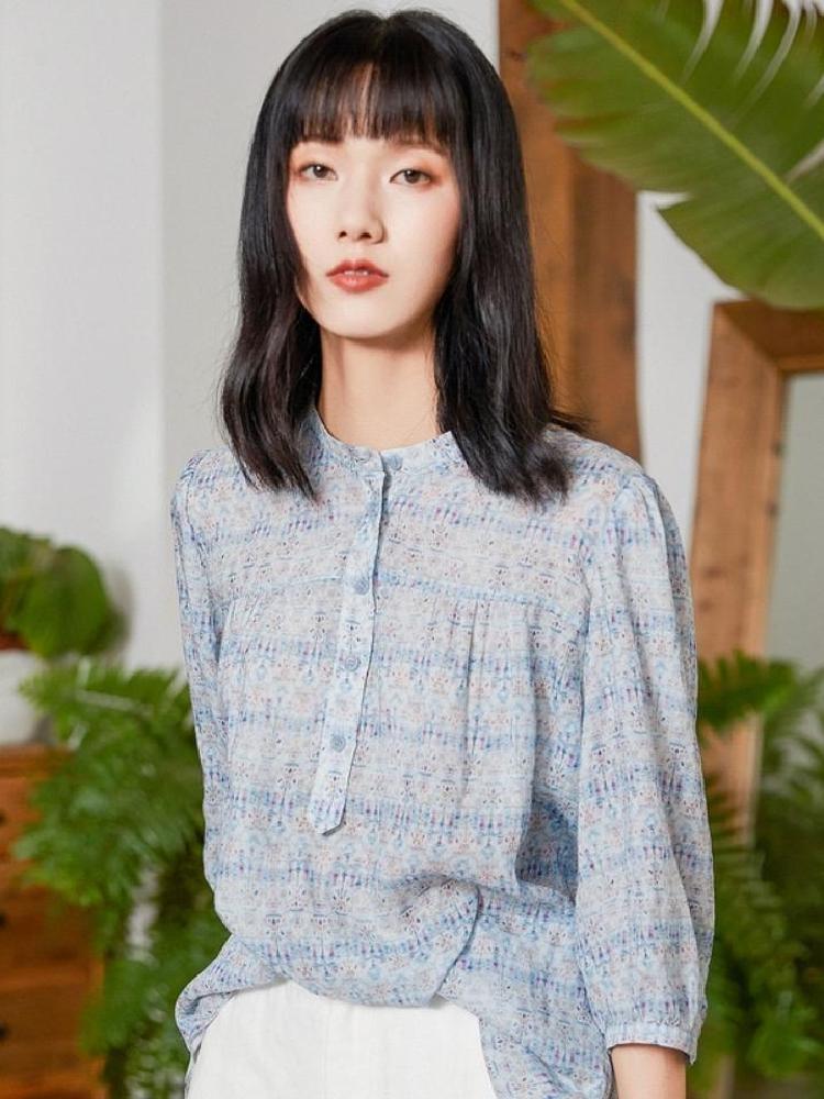 融合大气十分显女人气质衬衫,穿起來加舒服透气性,蓝花纹设计,含有清新的视觉冲击,多纽扣设计提高引人注意。