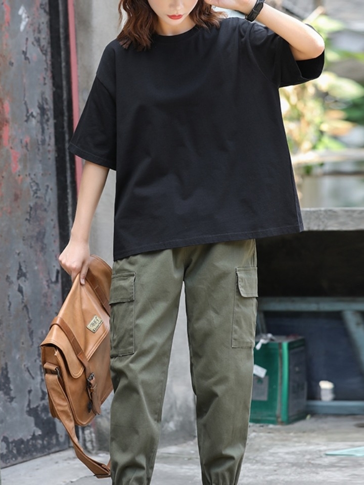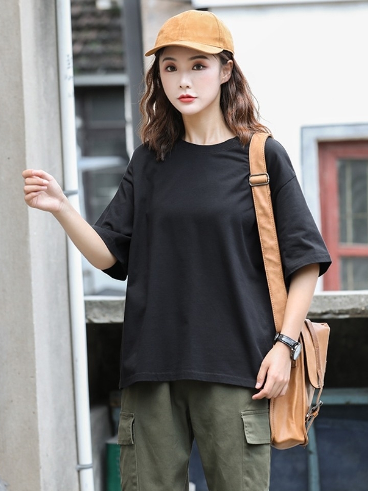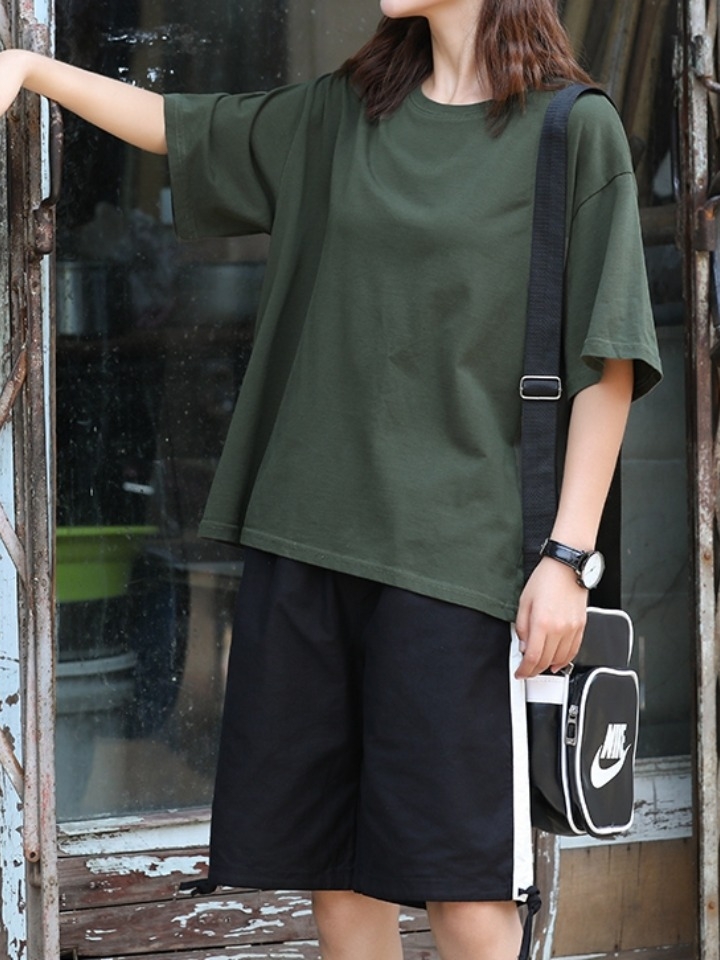 这款t恤是简约的风格,宽松的版型,时尚百搭,胸前的字母印花,很有个性,搭配牛仔裤或者短裤都很好看。