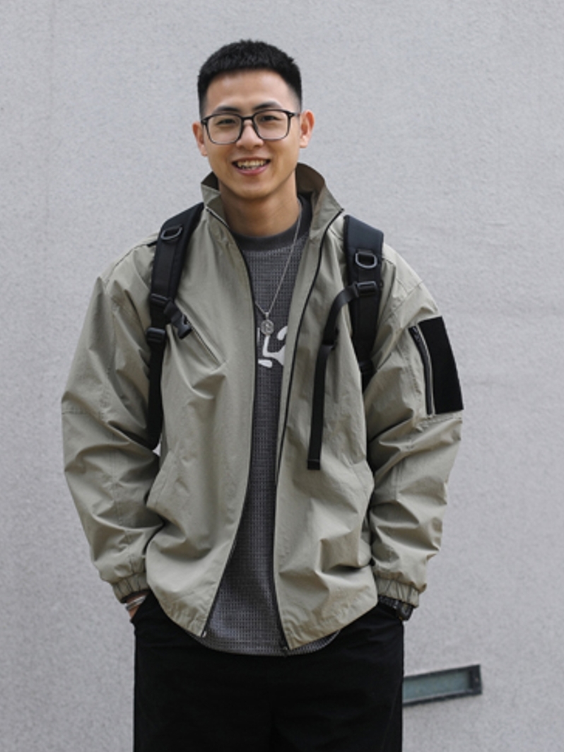 冲锋衣是运动休闲必不可少的装备,这款冲锋衣改良了传统冲锋衣呆板单一的版型设计,上身宽松舒适又有型。右胸倾斜拉链口袋设计,个性炫酷。