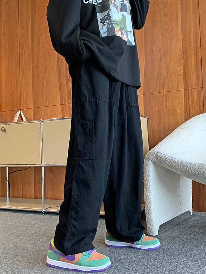 用简单的线条凸显裤子的简约线条感,多口袋设计,设计舒适大方,而且版型很好,搭配棒球服和板鞋街头潮范十足。