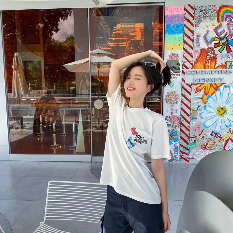 这款t恤是简约的风格,宽松的版型,时尚百搭,胸前的字母印花,很有个性,搭配牛仔裤或者短裤都很好看。