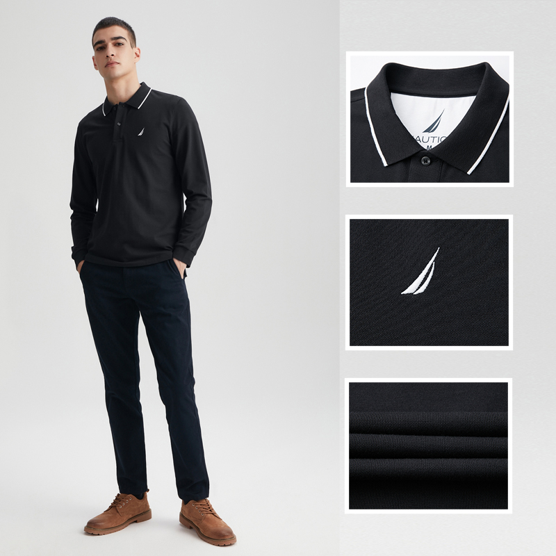 经典的翻领设计,凸显男士的干练气质,简约的纯色,时尚百搭。
