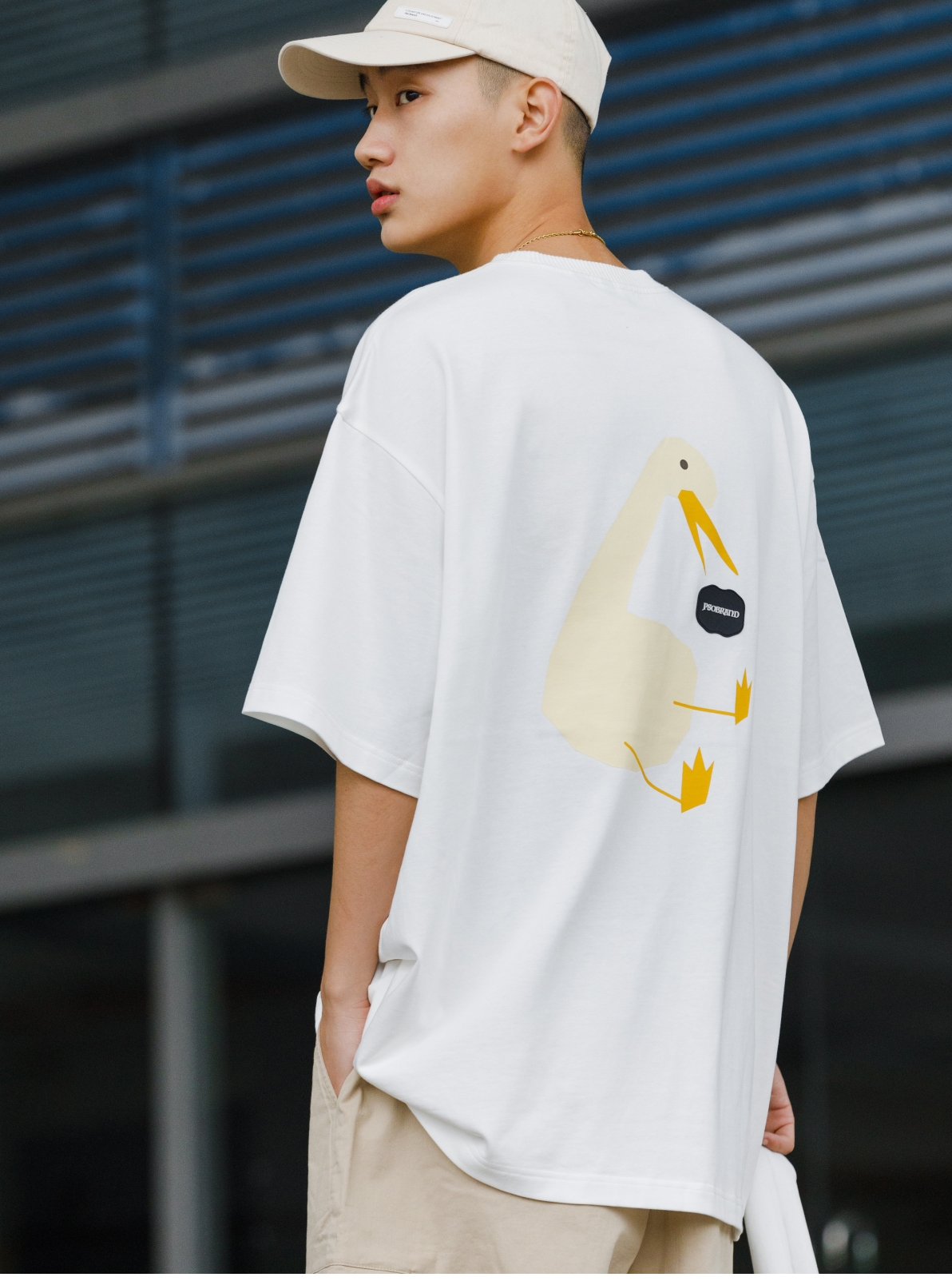 小白鸭印花好的起到了点缀的作用,打破了纯色的单调乏味,带着几分天真的趣味感,夏季配休闲短裤将青春的活力与朝气展现的淋漓尽致。