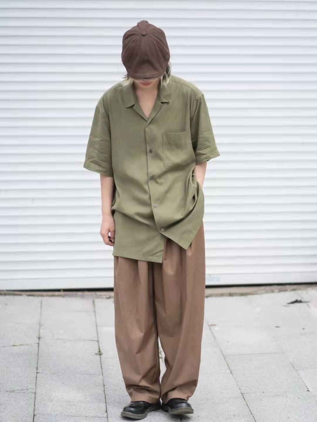 款式是非常复古的古巴领衬衫型,偏中性调的军绿色真的太适合春夏了,古巴领的设计加上整体宽松的版型简直是爱惨了。