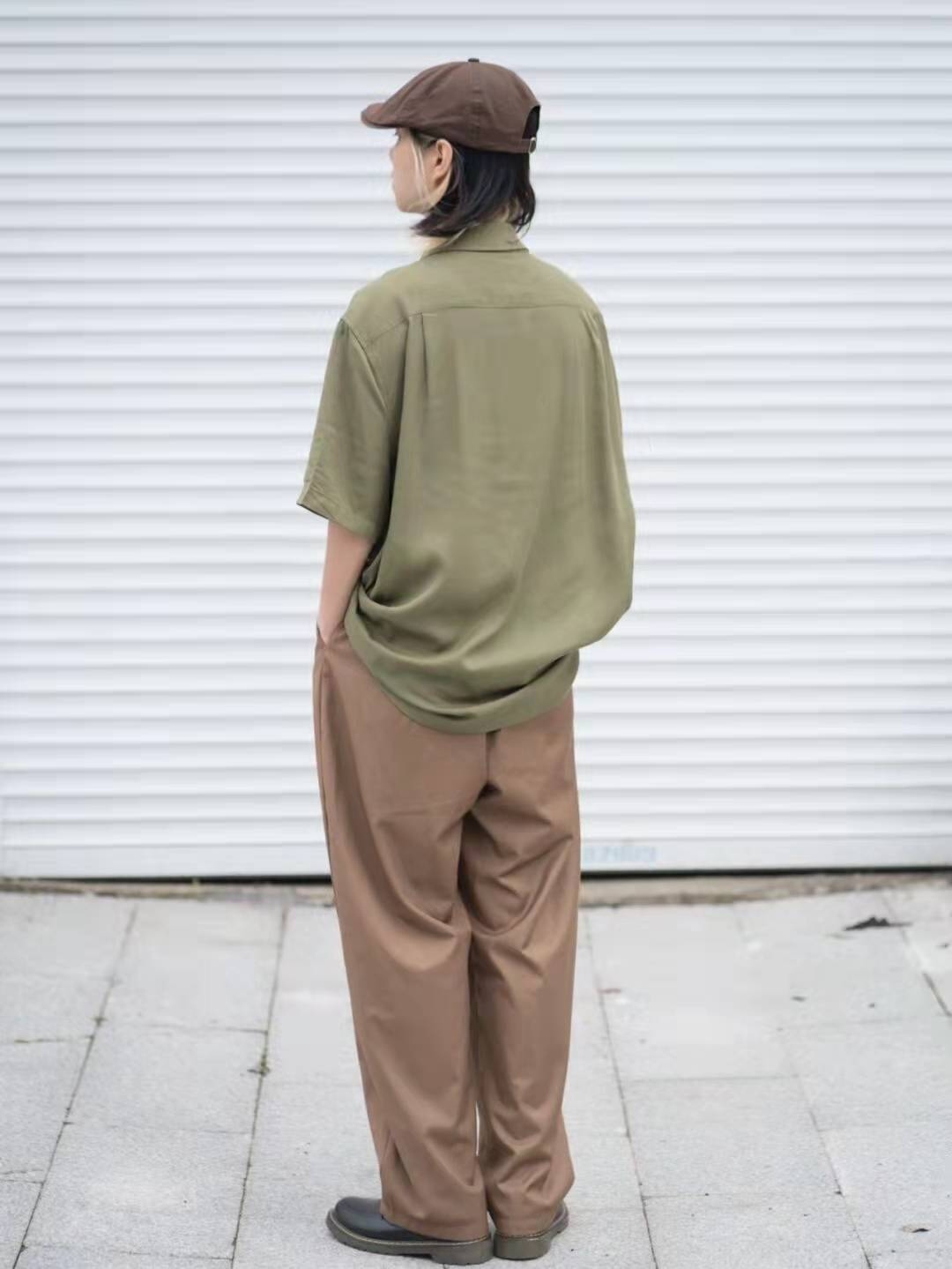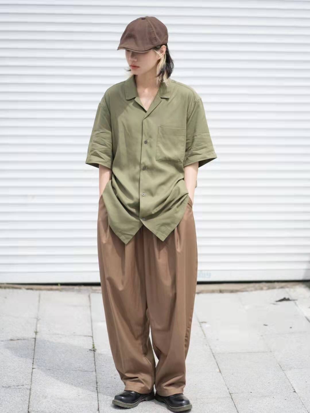 男生女生都可以穿,v领衬衫oversize给人很舒适休闲随性的,简单搭配宽松的阔腿西装裤或者牛仔裤,工装裤都好看,简约日系又质感高级。