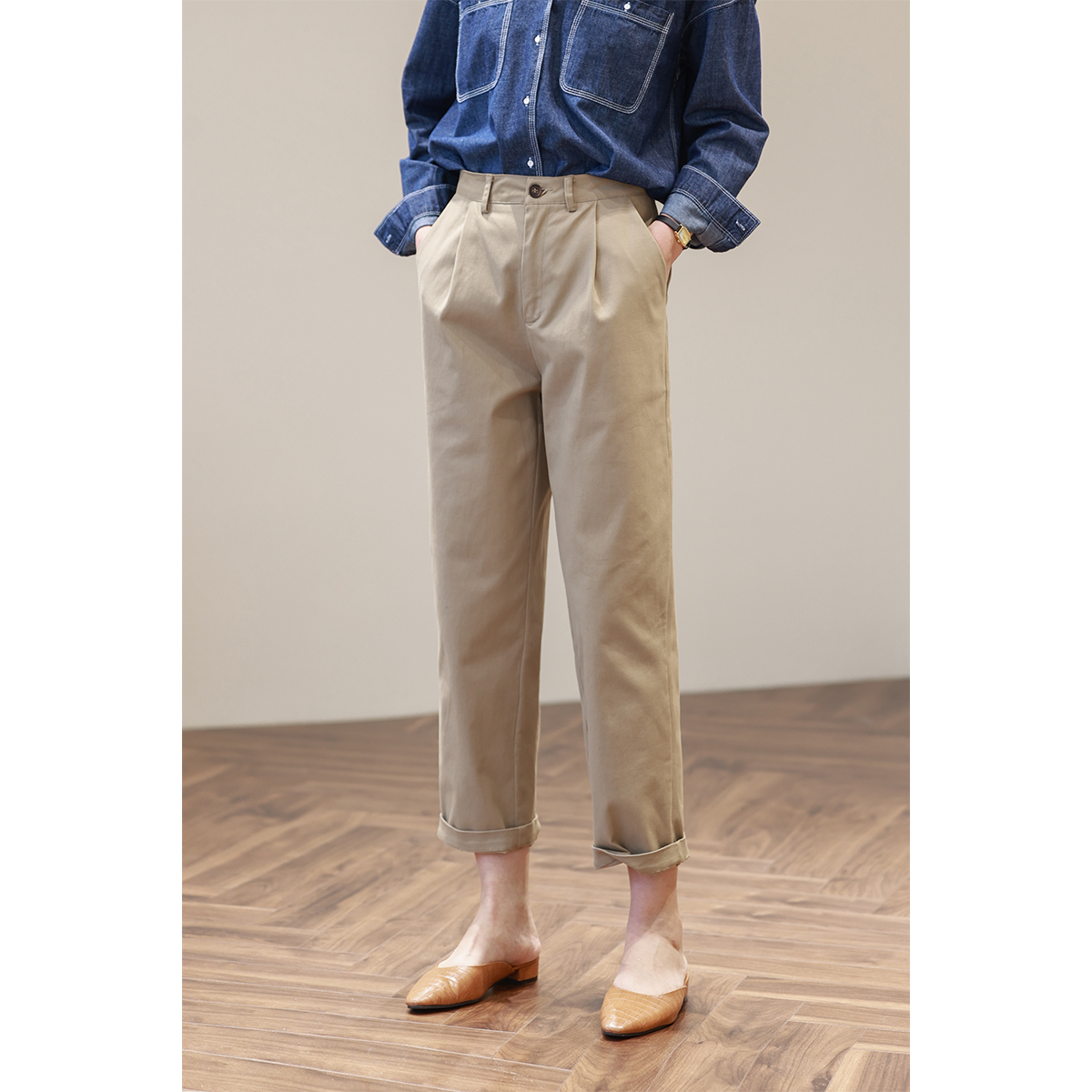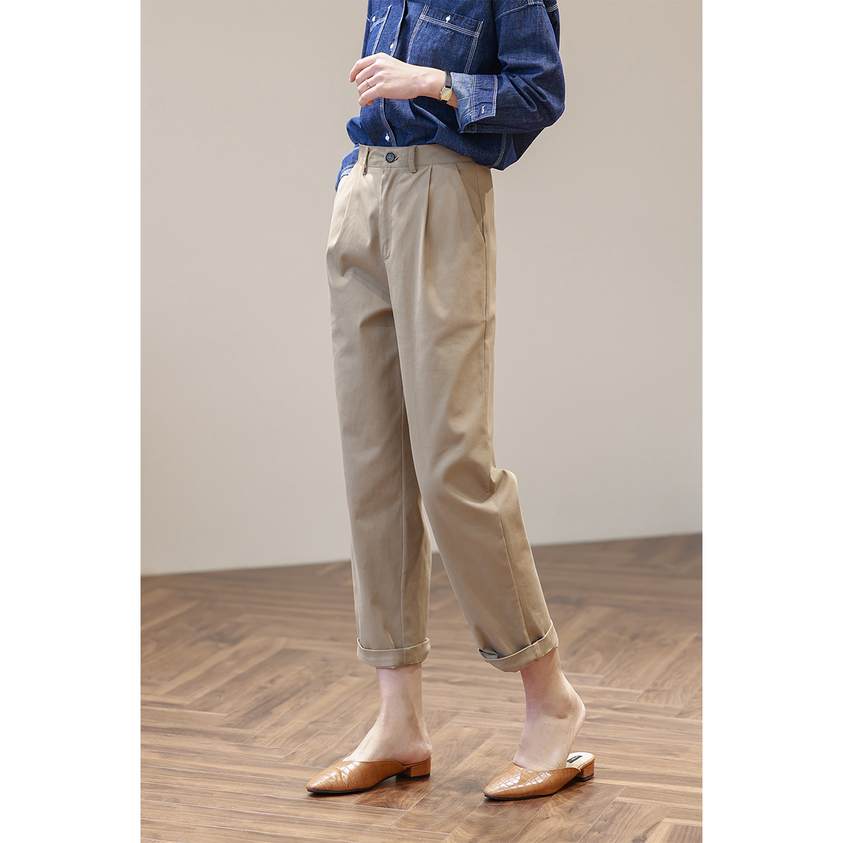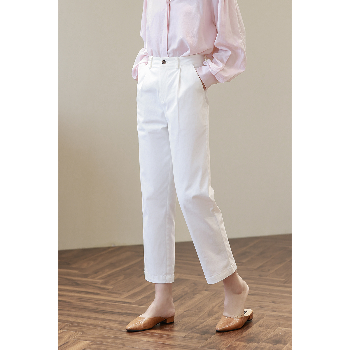 高腰的设计,拉长腿部线条,显瘦效果很好,高腰的版型,很显高挑,修身的剪裁,修饰腿部曲线,上身很有范。