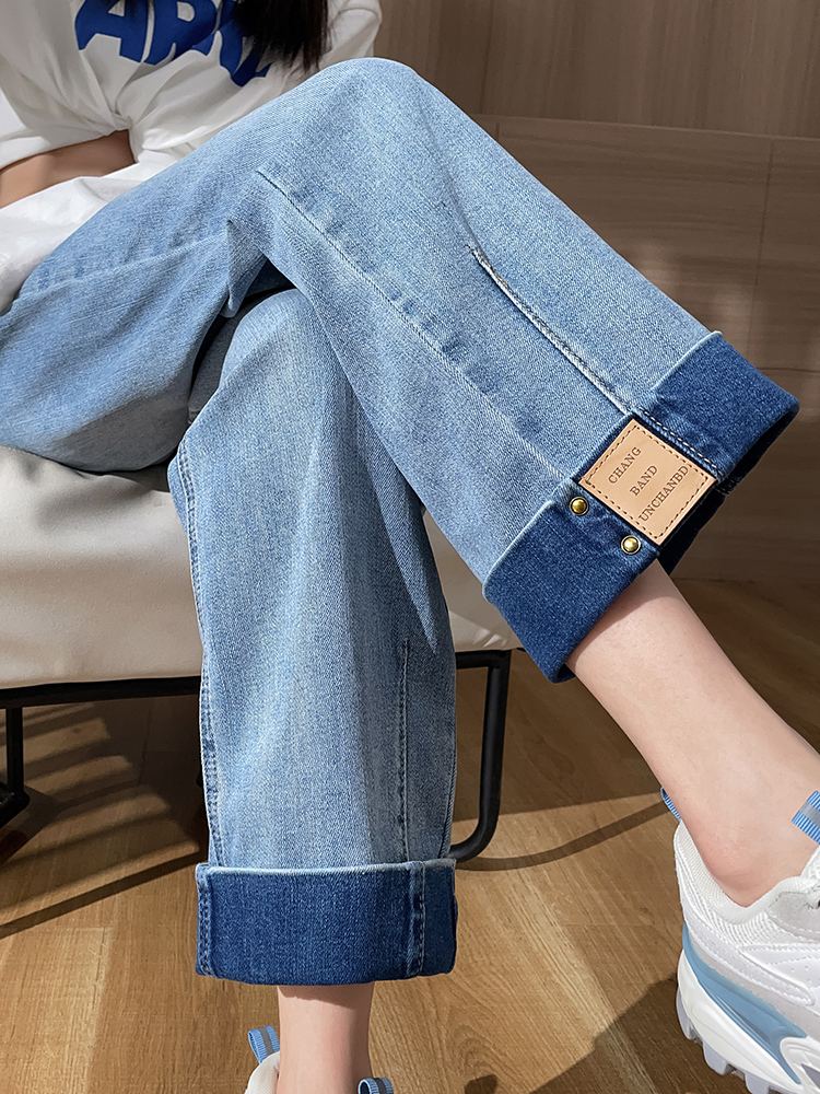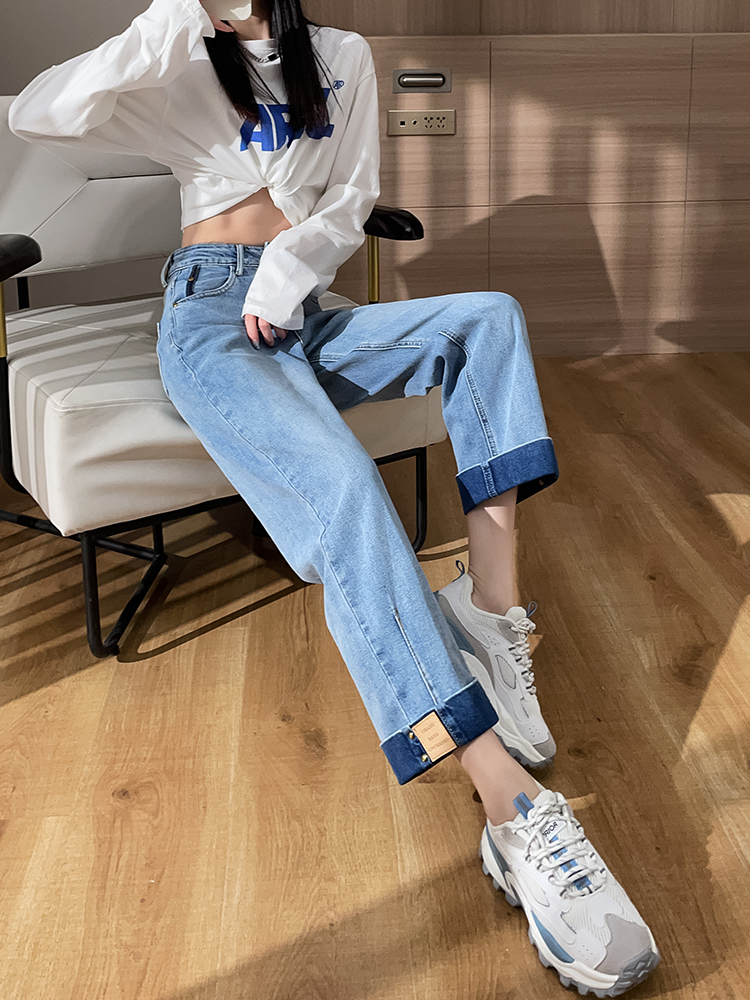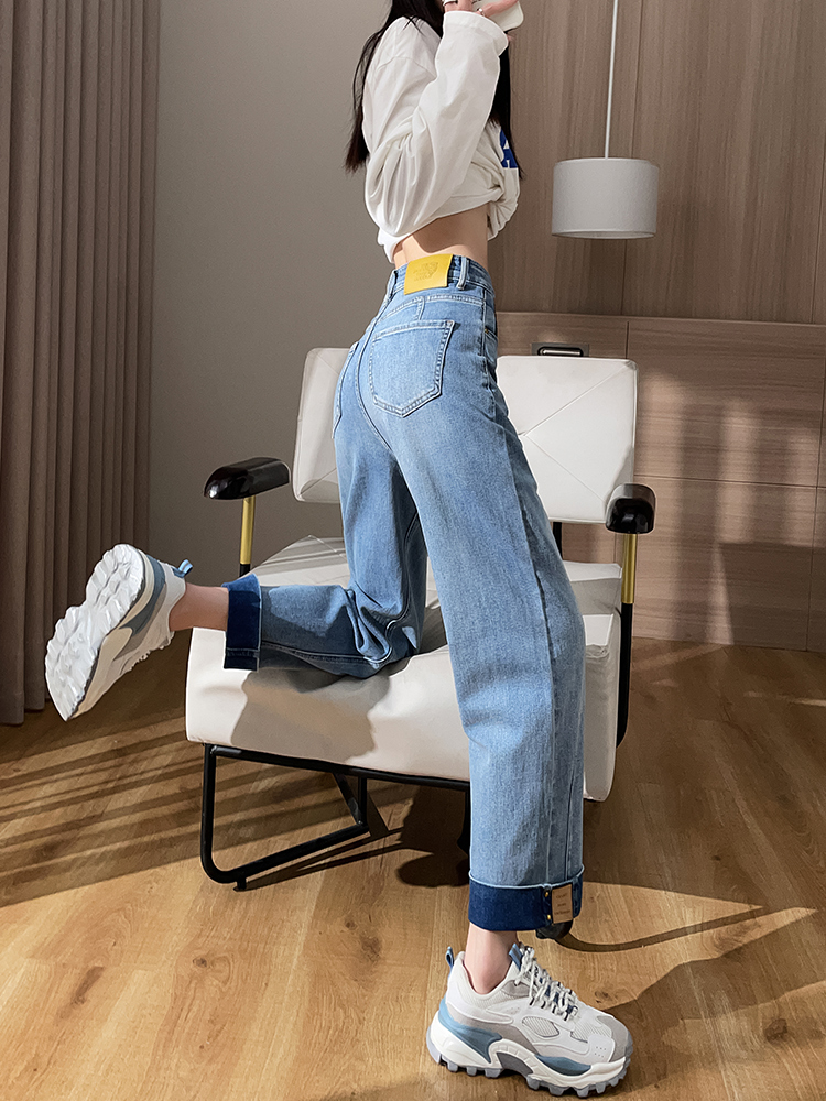 经水洗工艺做旧的蓝色色系,将复古与怀旧结合起来。选用了优质的棉牛仔布面料,质地柔软,穿着亲肤舒适性好。直筒版型的裤身裁剪。