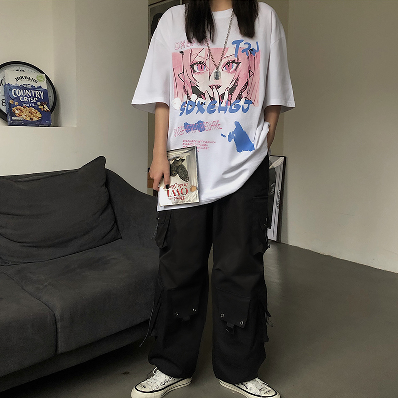 t恤采用了宽松的版型设计,穿着舒适自在,胸前的卡通印花图案,充满了童趣,搭配上一条牛仔裤,就能轻松驾驭。
