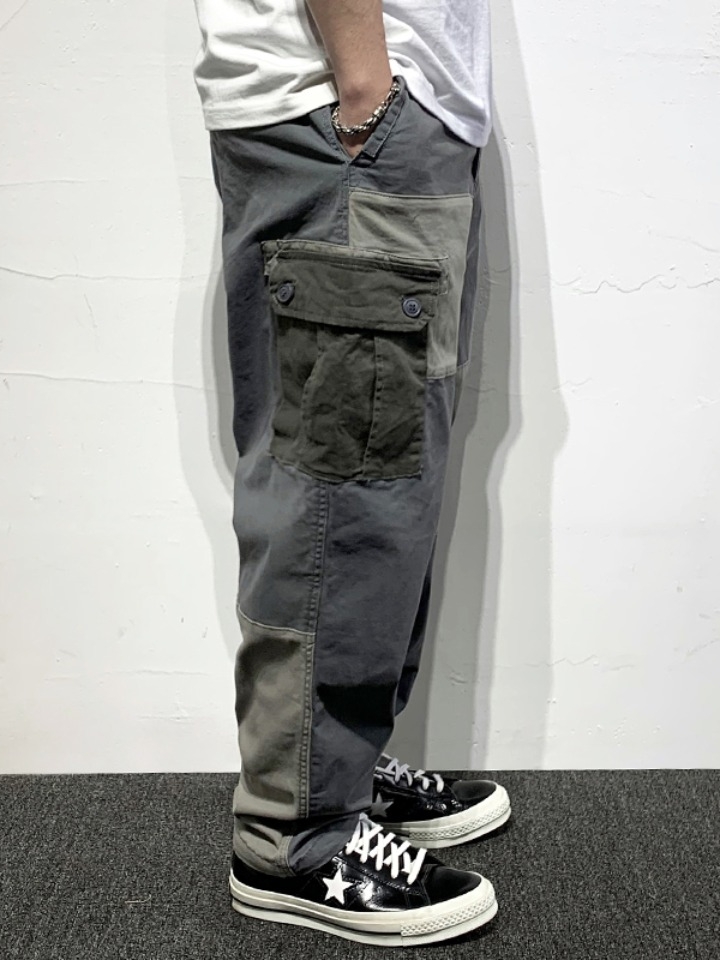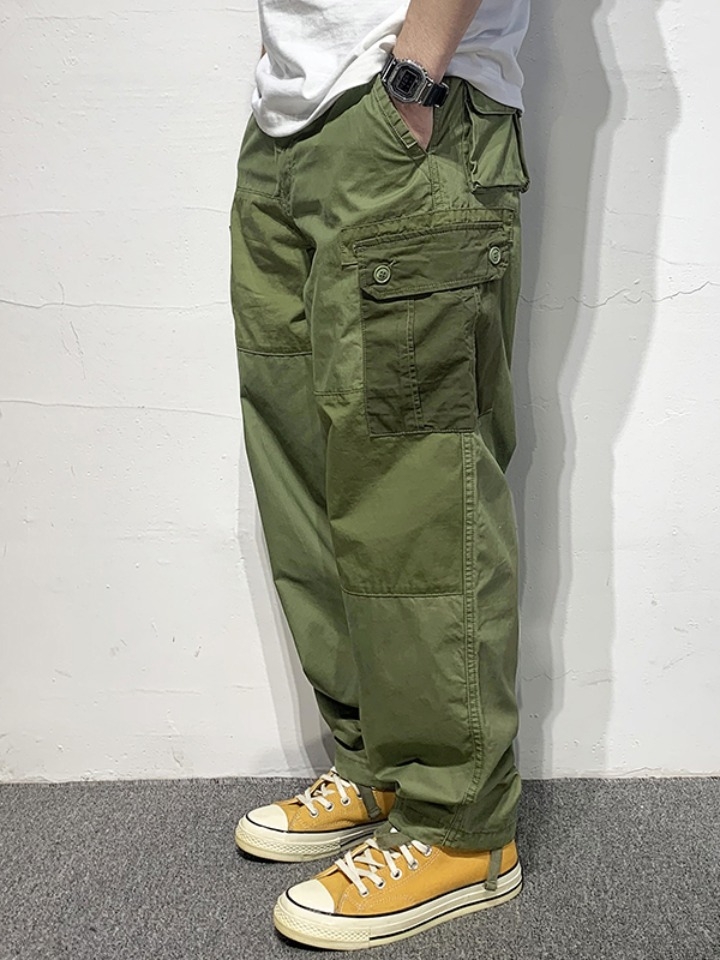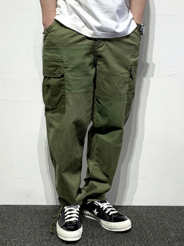 很简约的一款工装裤,包袋翻盖的上扬感觉,有些活力的感觉;整体采用纯色的调性,带有复古的味道,也能很好的搭配衣着。