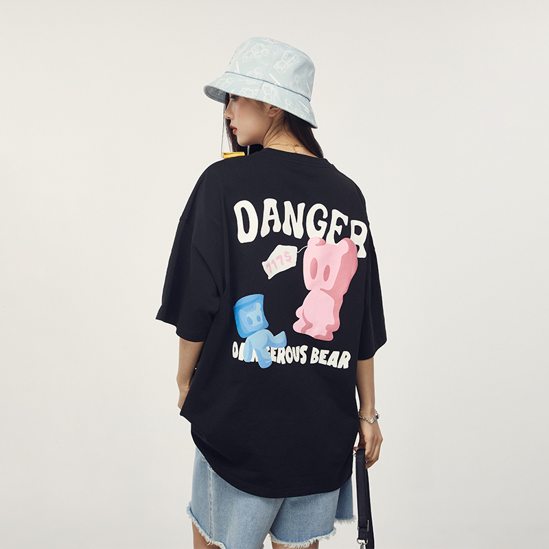 宽松T恤,让你轻松驾驭,卡通印花图案,俏皮可爱,白色的色调,简约又百搭,宽松版型,穿着舒适自在。