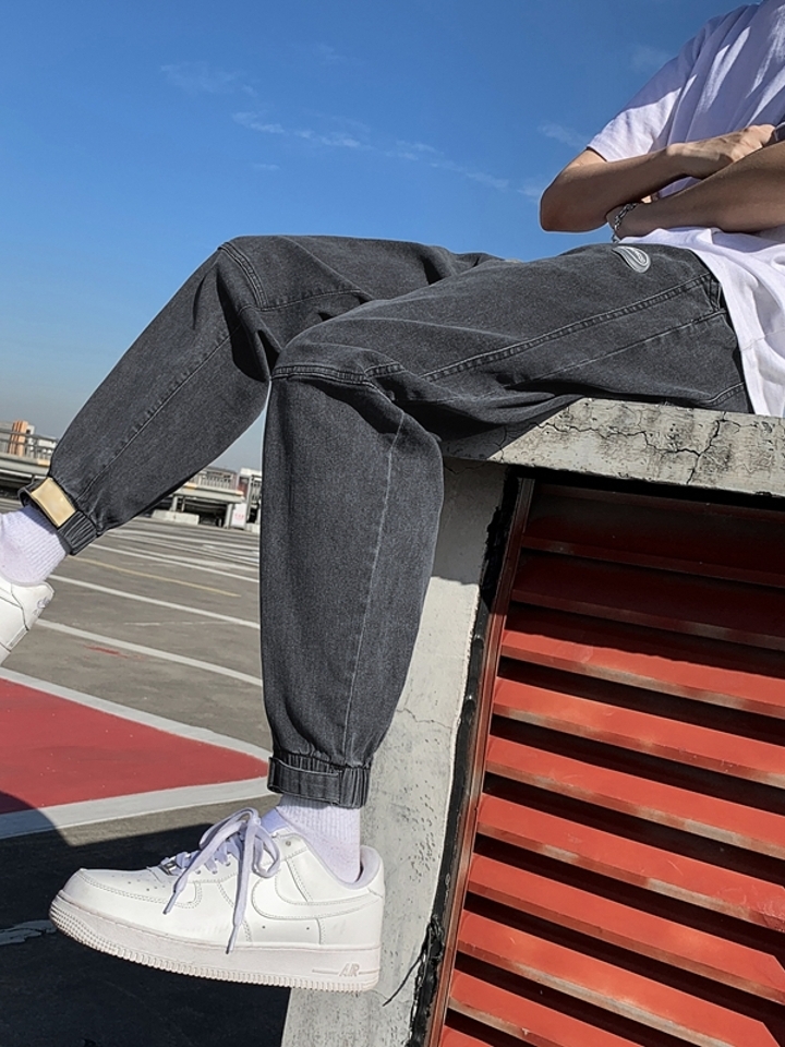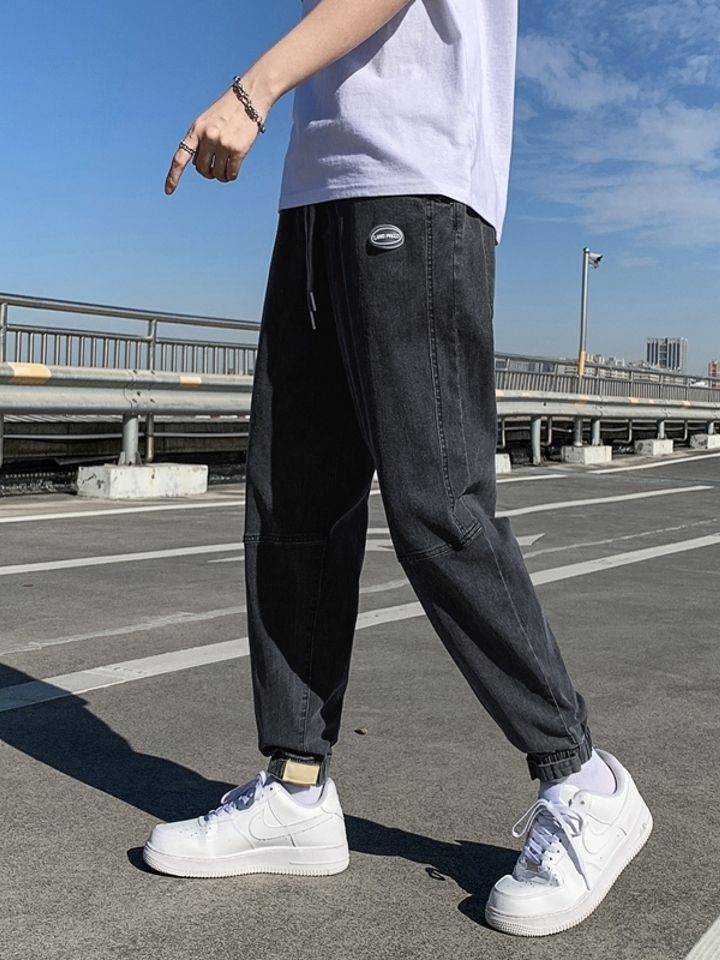 直筒阔腿宽脚设计,裤脚个性的束脚设计,增添了裤款的层次感。中腰直筒版型,对身材包容性强,尤显百搭易穿。