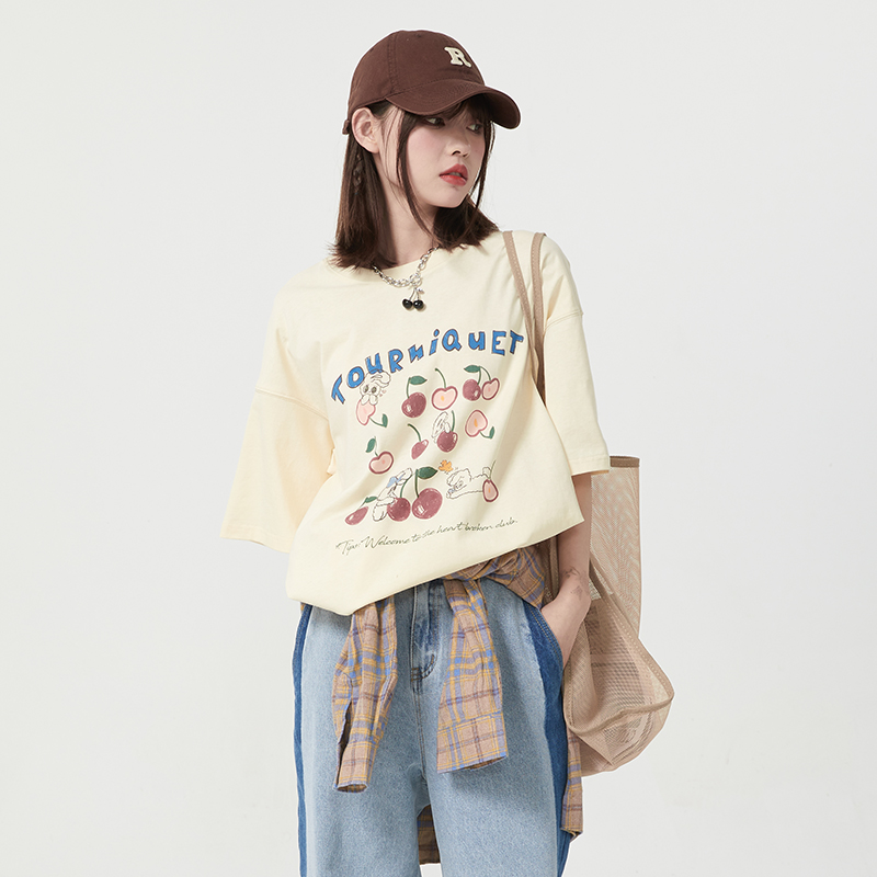 T恤采用了经典的圆领设计,穿着舒适,不易变形,胸前的印花图案,让人眼前一亮,宽松的版型,不挑身材,上身效果很好。