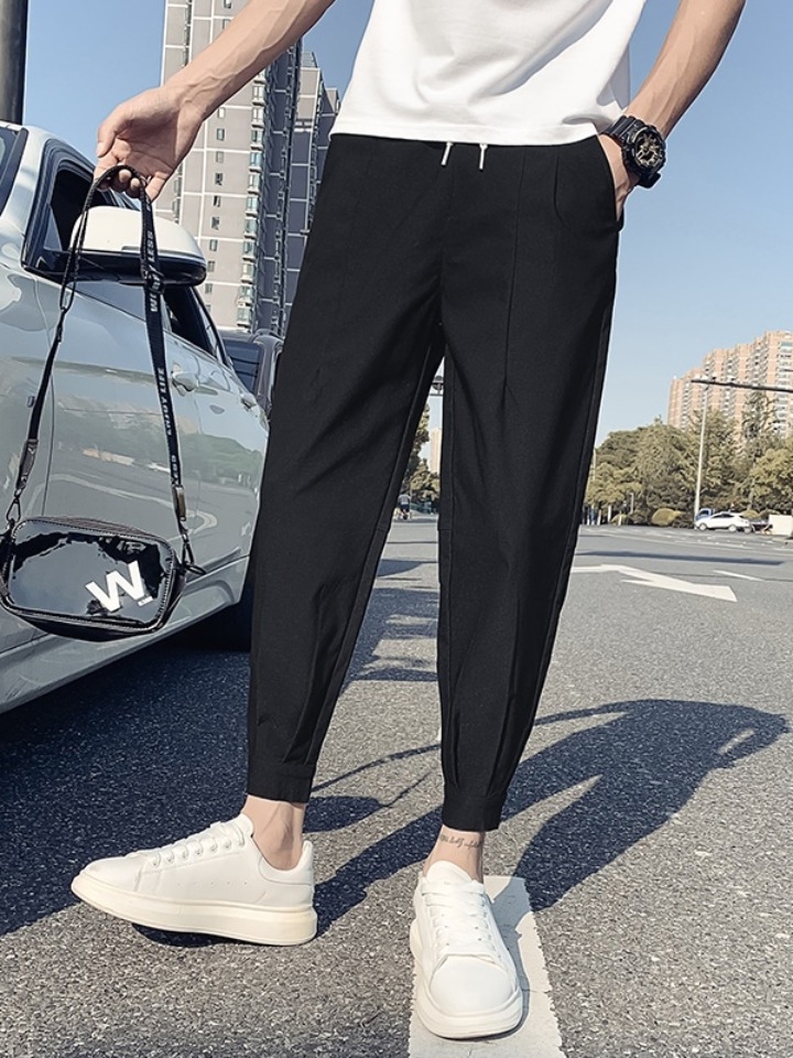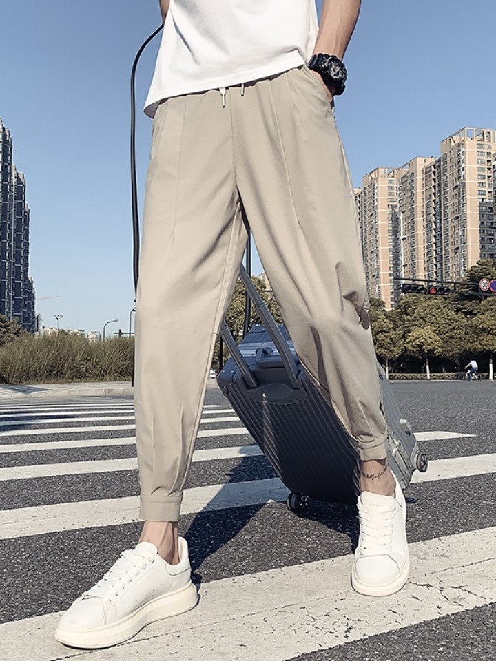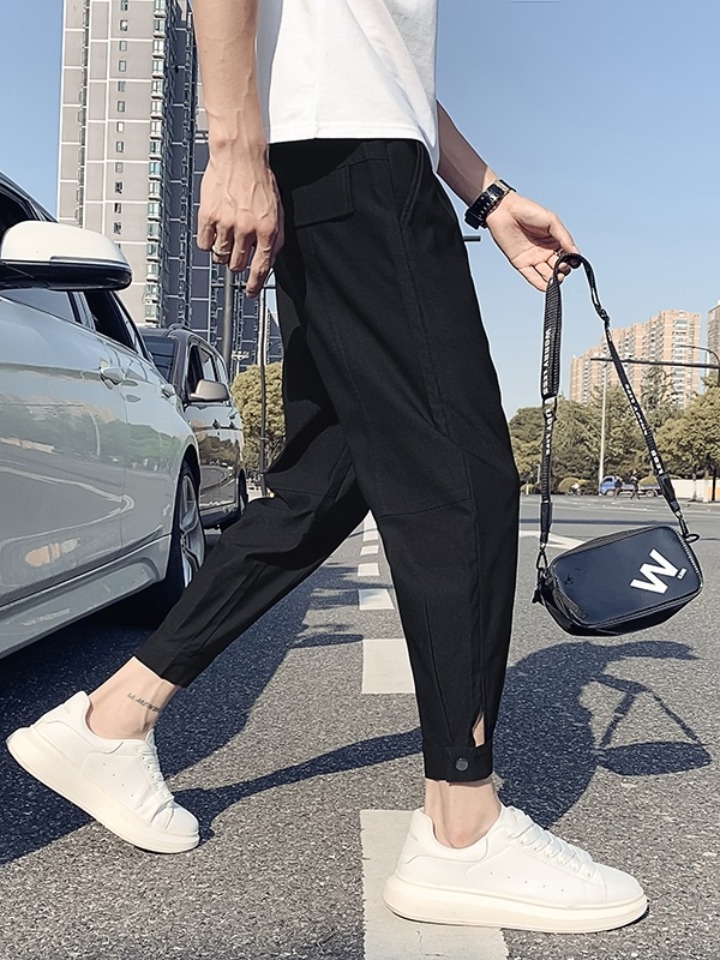 休闲裤穿着更展现出绅士、温文尔雅的气息,比较适合上班的时候穿着,但是普通的款式设计穿着也很无趣,加入束脚设计的休闲裤看着在沉稳中体现一丝活力