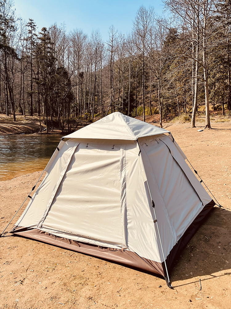 所含有的多层黑胶面料,加强防晒效果,避免阳光直射肌肤。帐篷四侧都可以开门,通风透气性非常好,整体防水,防紫外线,实用性非常强。