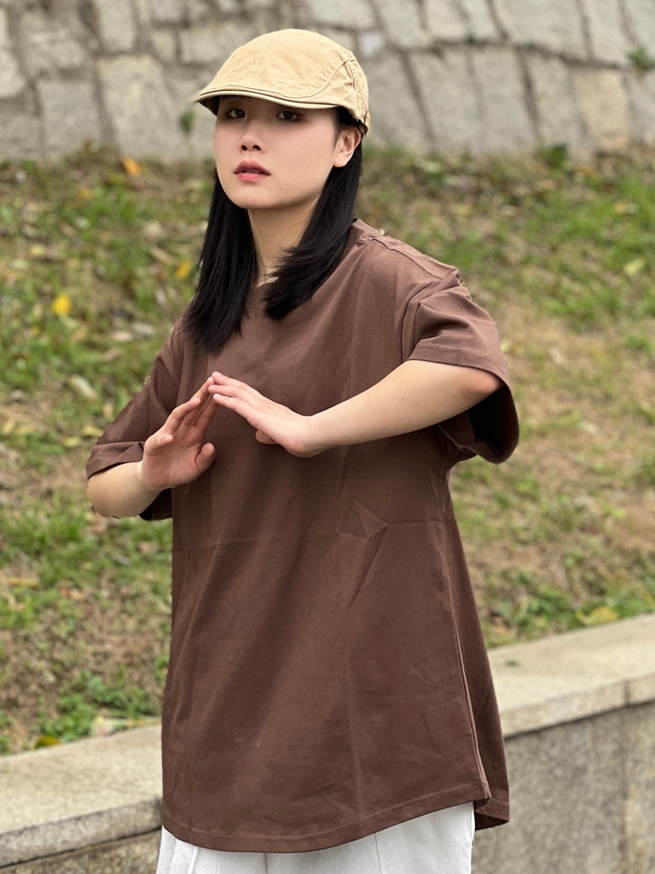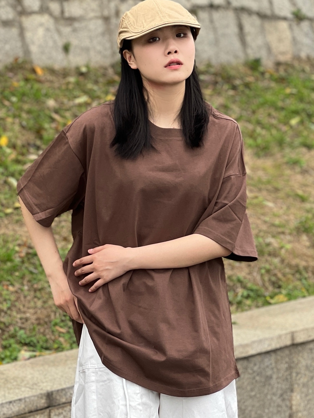 宽松廓形的版型加上简约大气的圆领就是我的最爱,整件衣服没有任何元素的添加,但是质感透露着高级。危机青年这款大版型的复古色T恤穿着显得皮肤很白, 阳光下很耀眼。