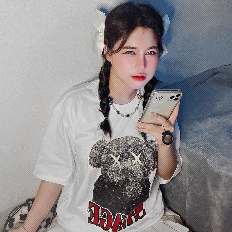 T恤采用了纯棉的面料,穿着舒适透气,宽松的版型设计,上身舒适自在,胸前的印花图案,充满了青春活力,搭配牛仔裤或者短裤都很好看。