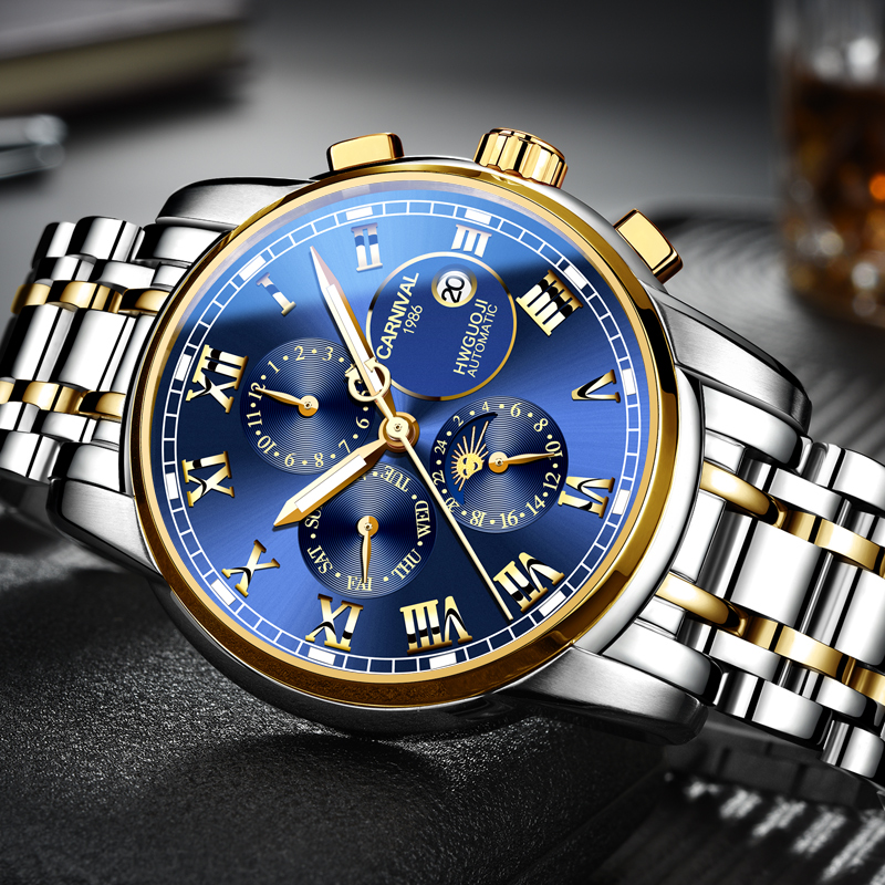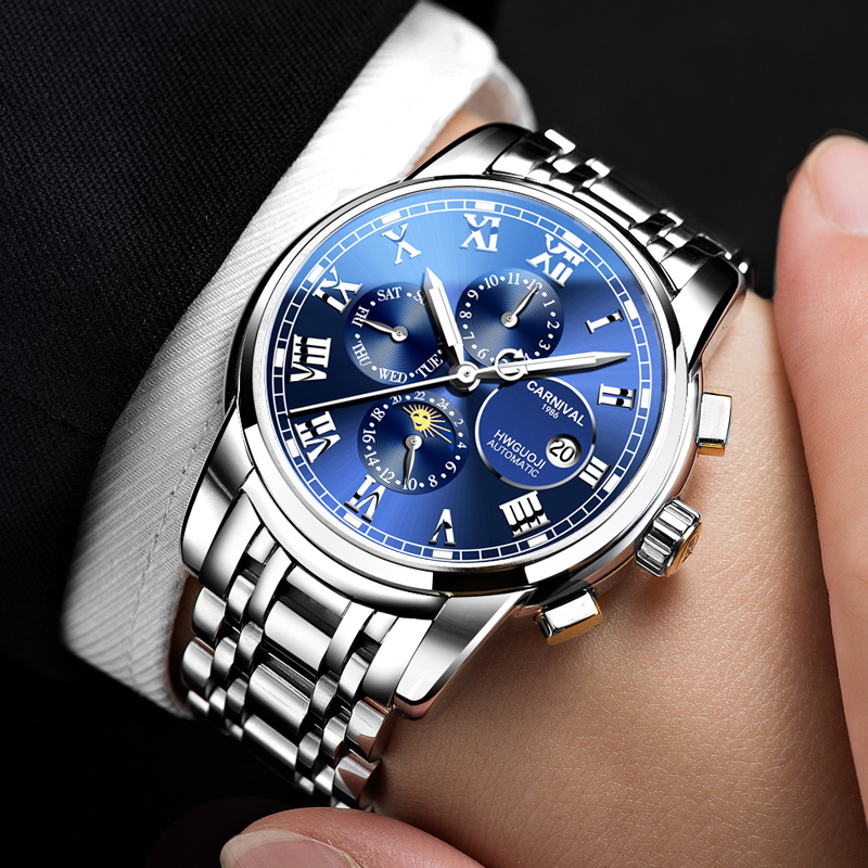 采用全自动机械机芯,走时更精准。 人工合成蓝宝石表镜,防刮耐磨。