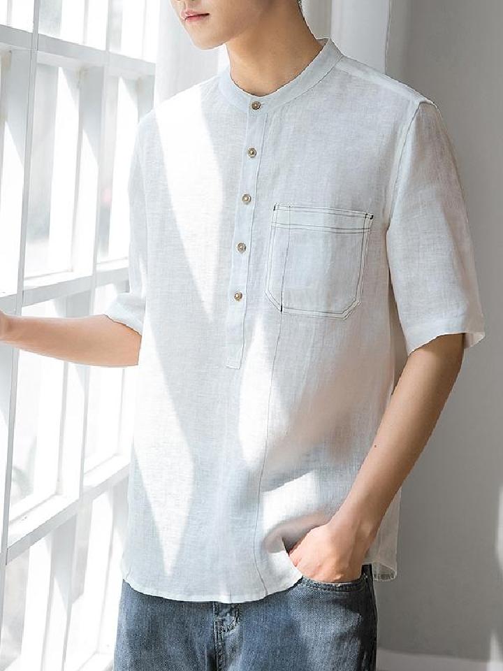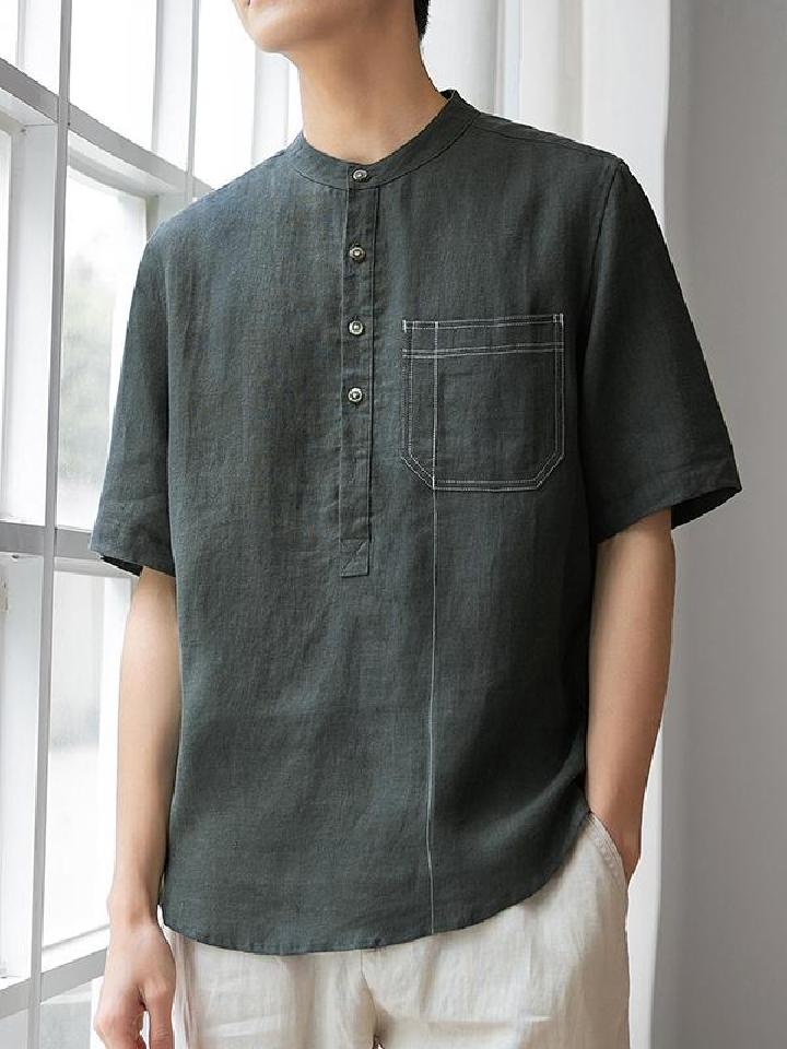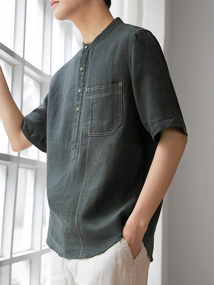 宽松休闲透气亚麻短袖T恤,松的版型,打破沉闷,不仅舒适百搭,而且展现潮流。包边袖口设计,走线平整简洁,干净利落。