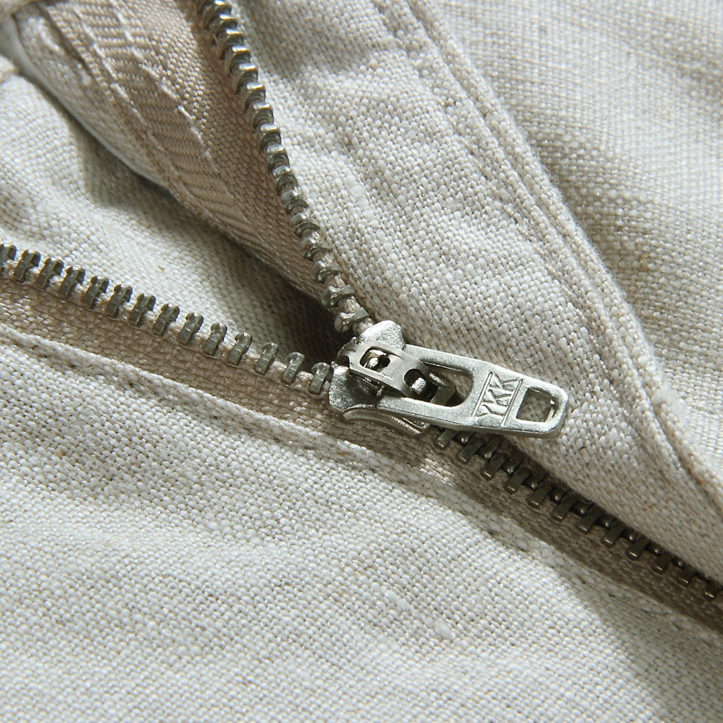 亚麻材质,穿着舒适透气。长裤版型,修饰腿部线条。西装领设计,男人味十足。