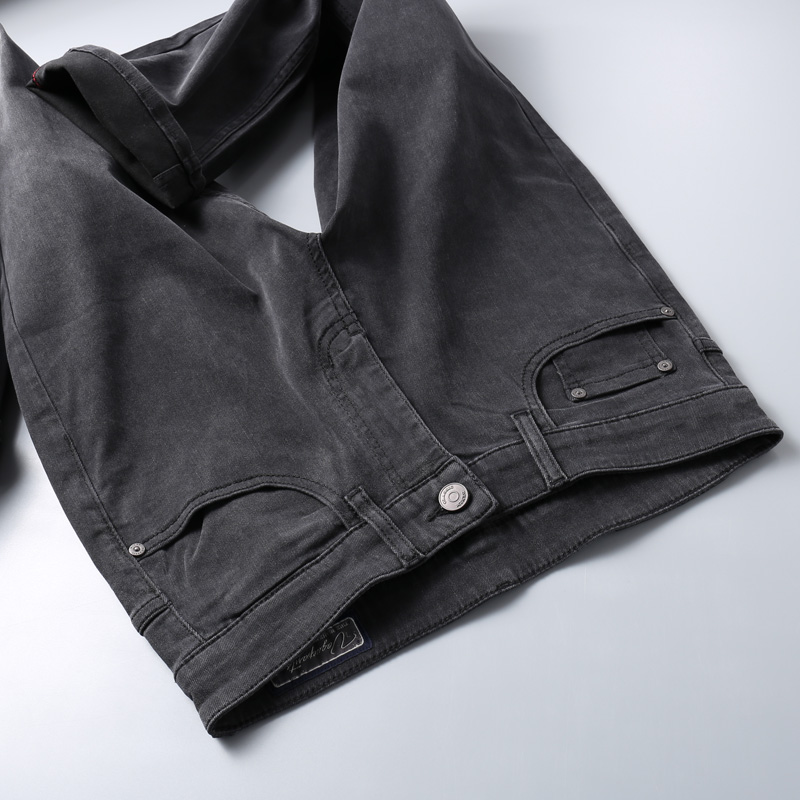 直筒的裤型,上身舒适自在,裤脚的毛边设计,增添了几分时尚感,修身的版型,拉长腿部线条,显瘦效果很好,搭配一件T恤,帅气十足。