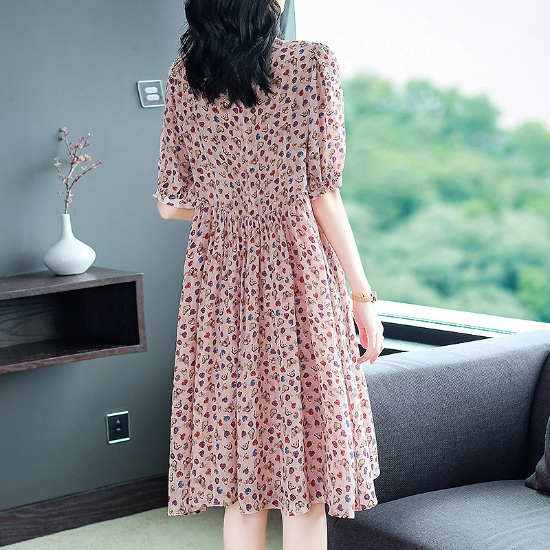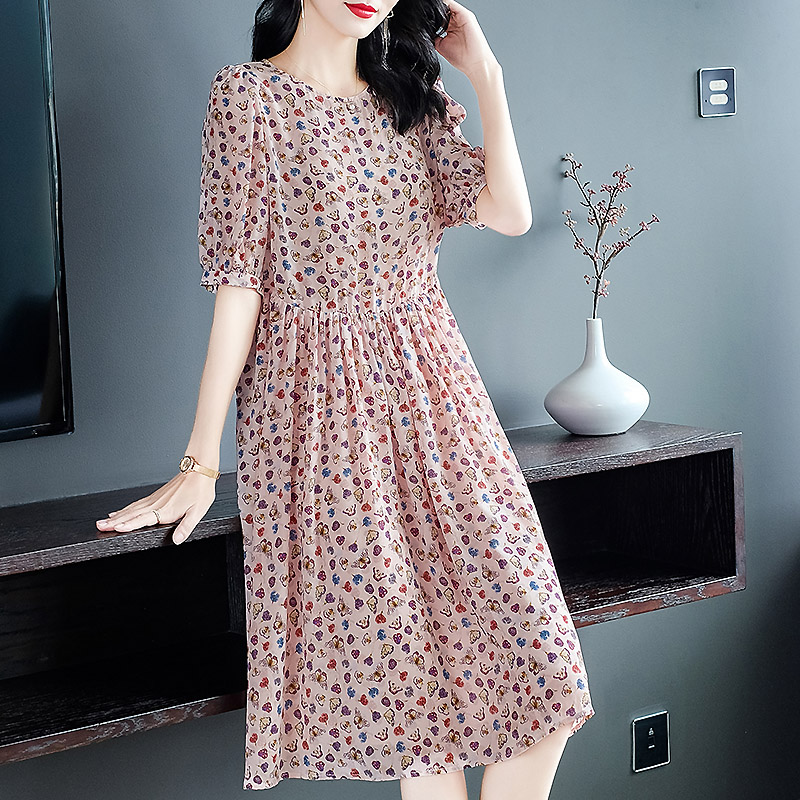 宽松的版型,上身舒适自在,优雅的印花,彰显女性的优雅气质,宽松的裙摆,飘逸灵动,仙气十足。