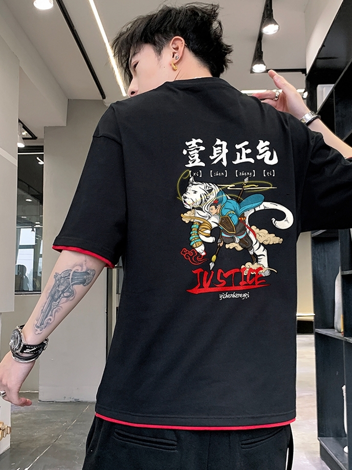 这款t恤是简约的风格,宽松的版型,时尚百搭,胸前的字母印花,很有个性,搭配牛仔裤或者短裤都很好看。