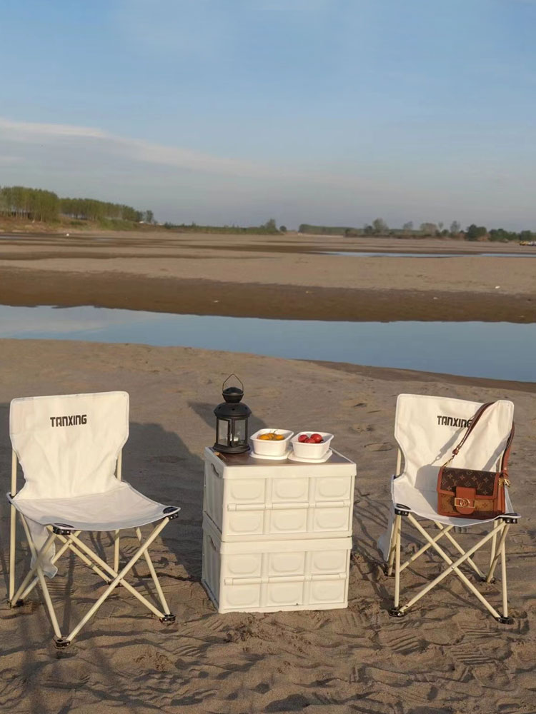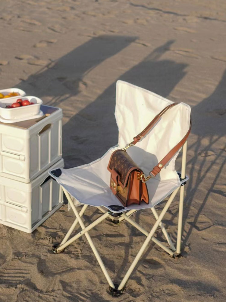 米白色的椅身设计,更加的清新高级。椅面加厚牛津布,三重走线能使其承受更大压力。折叠式的设计,携带方便。