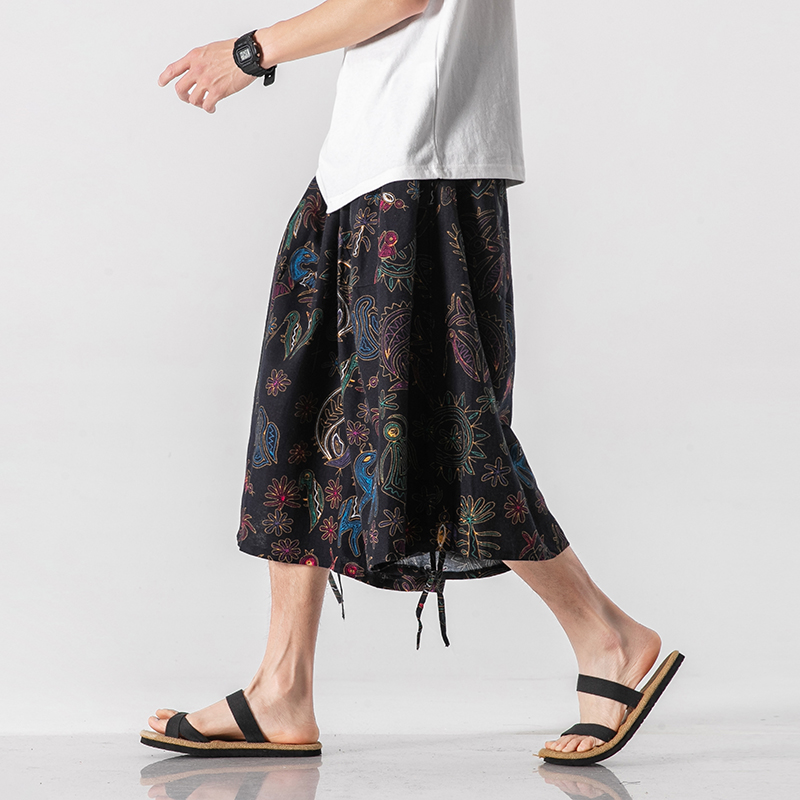 松紧裤腰设计,穿脱方便。休闲裤,让你穿出大长腿。七分裤长,修饰腿部线条。