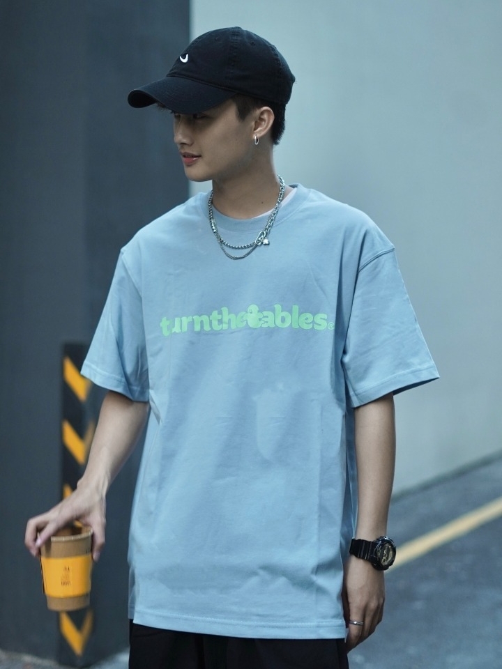 Turnthetables这款T恤的料子是纯棉材质的,我很喜欢这种又软又轻盈的面料,穿起来特别舒服,一点也不闷热,夏天就是要穿这种面料呀~