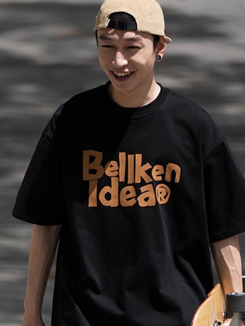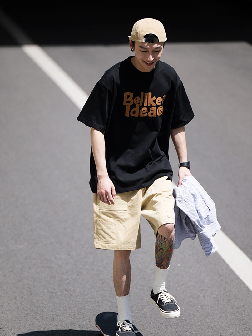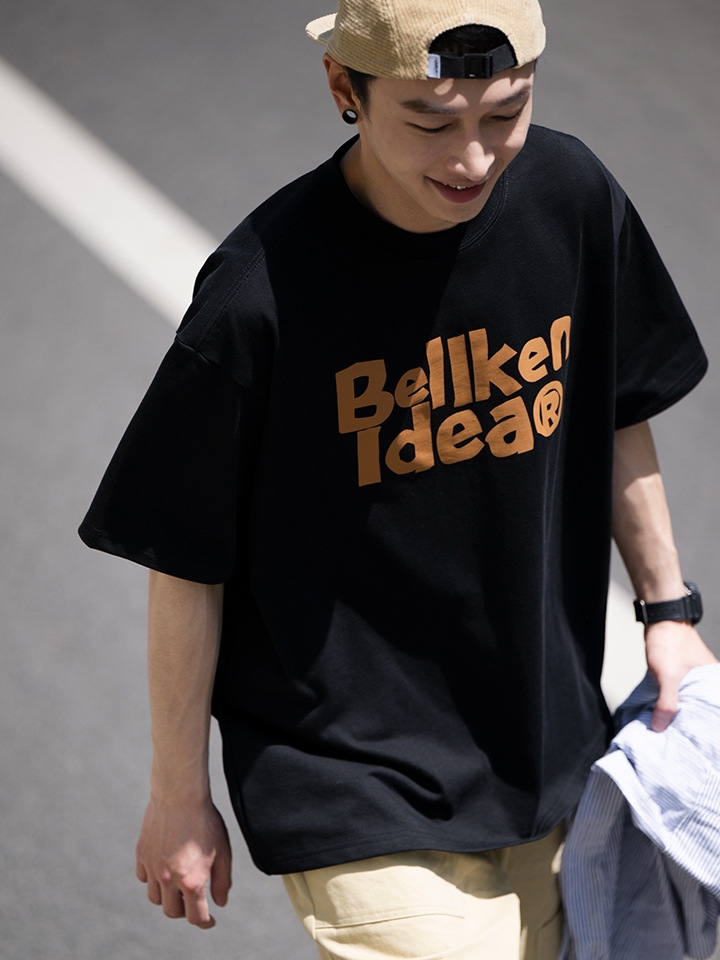 胸前大幅复古字样标语印花,显得潮流感满满。圆领设计精致大气,凸显品牌个性。这款t恤采用的是宽松的版型设计,更具有时尚的街头感。
