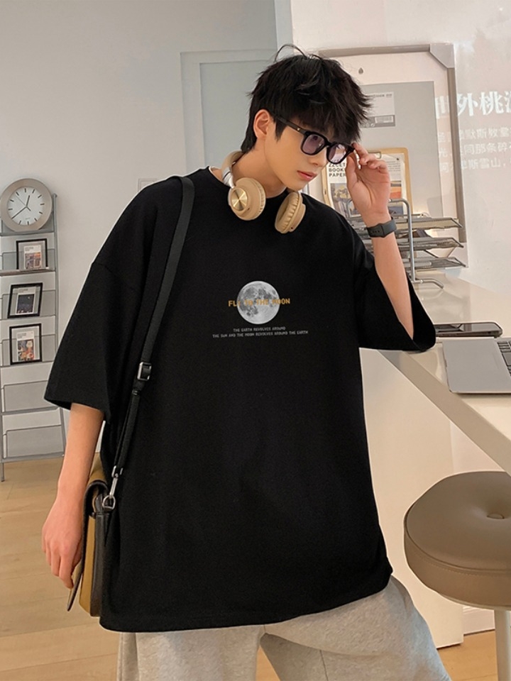 这款T恤使用棉制作的面料,亲肤舒适的同时又不容易产生褶皱,圆领更贴合颈部线条,黑色搭配亮色金鱼泼墨颇具艺术性,看着吸人眼球整体风格青春潮流。