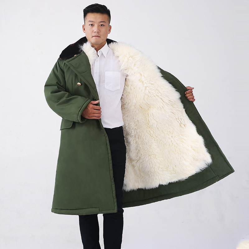 羊皮材质,穿着舒适保暖。加厚厚实,保暖效果极佳。大衣版型设计,修身显瘦。