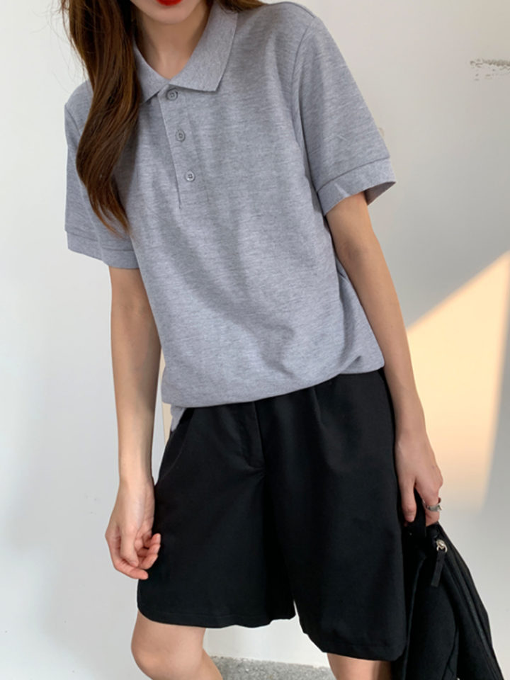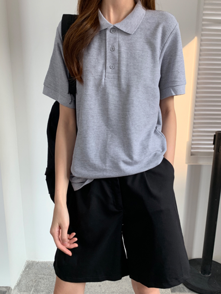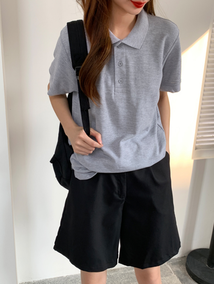 我好喜欢短袖的Polo领,非常干练利落,这个灰色超级显白,简单大方,是我喜欢的风格,赞赞赞。