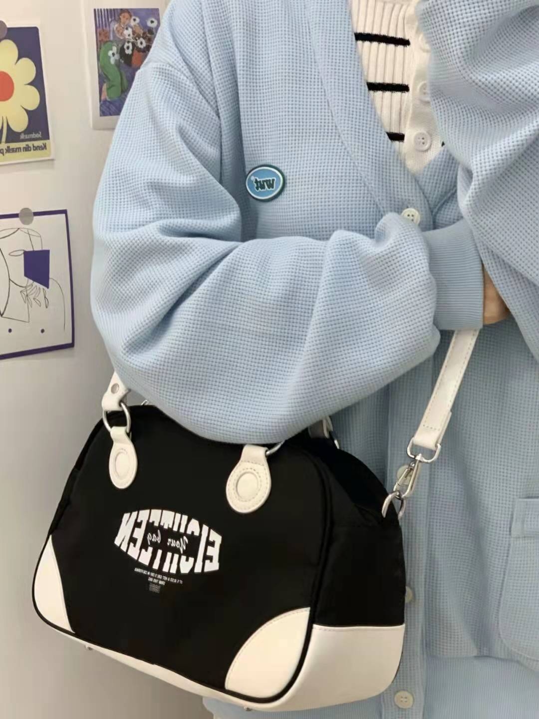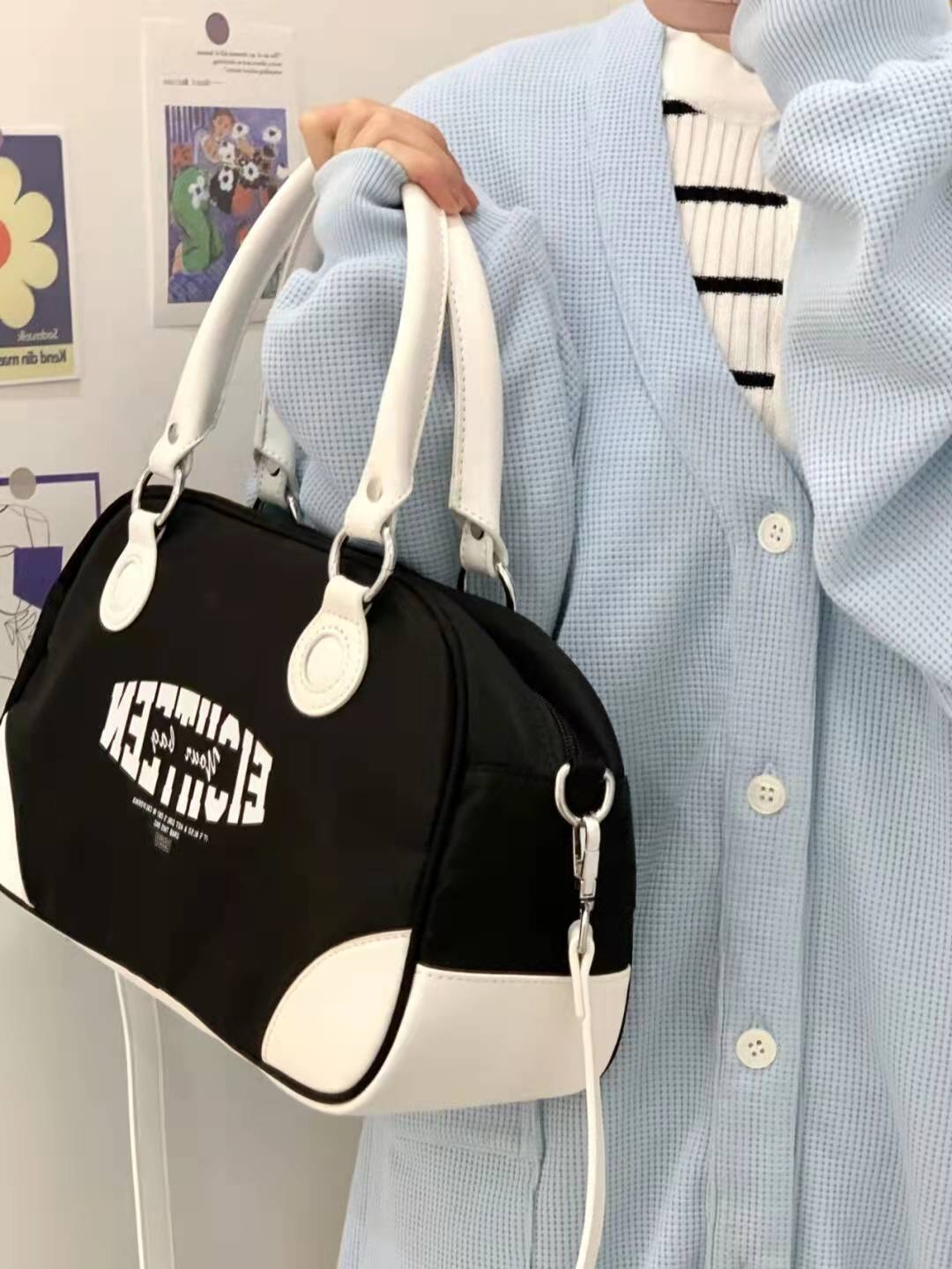 好喜欢这种黑白配,辣妹冲就完事了,百搭又能装,手提斜挎真的都很好看诶,还是尼龙质地,已经想好怎么背它出去玩啦。
