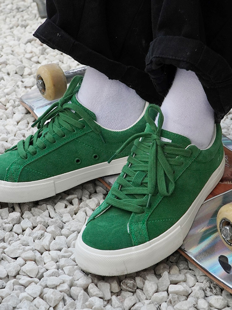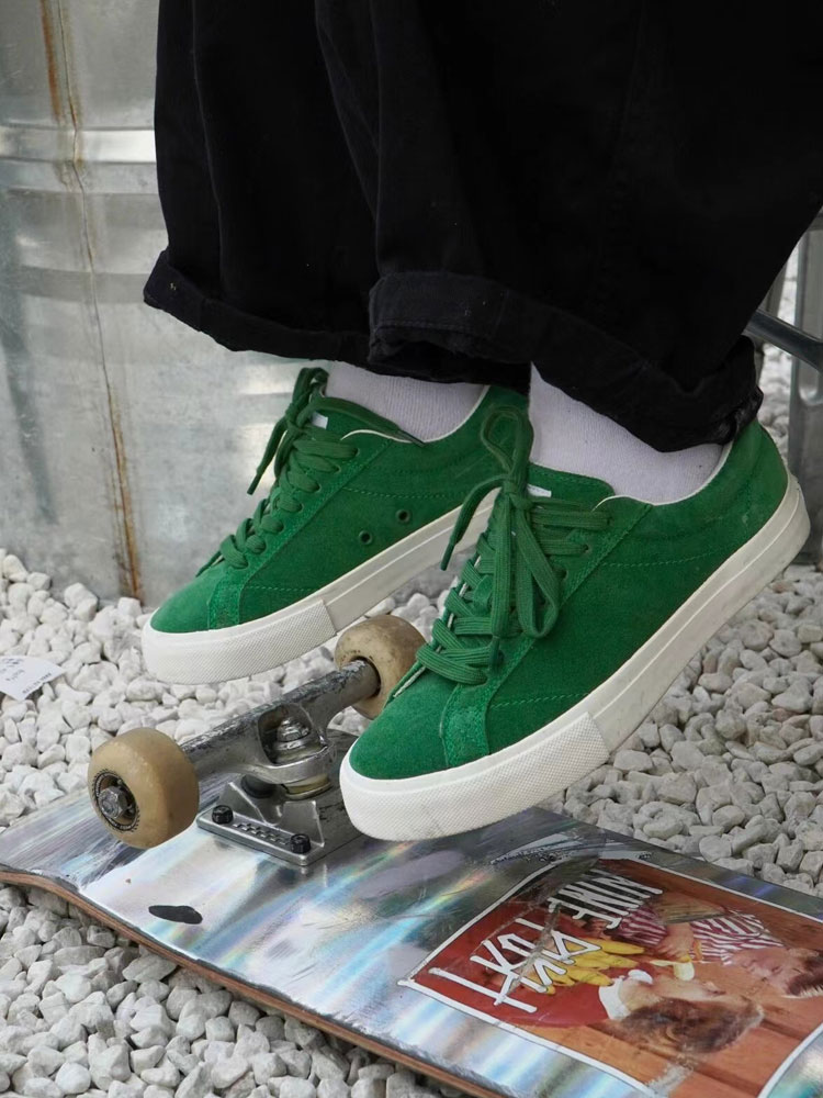 低帮板鞋的经典款式,百搭永不过时。鞋面选择了采用了绿色和白色的拼接设计,彰显着十足的街头复古气息。