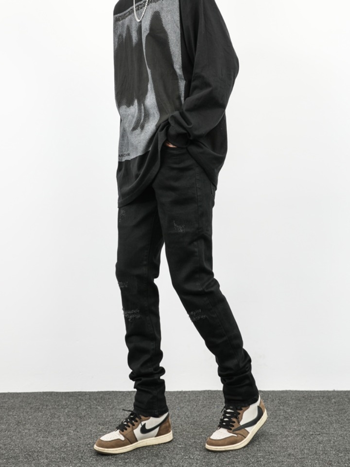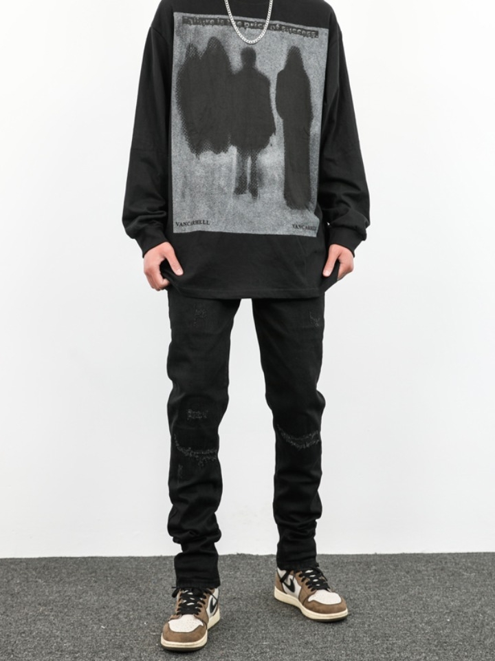 时尚破洞补丁设计,凸显年轻态度,青春活力,宽松版型,使牛仔裤穿着自在舒适,不拘束,经典水洗磨白效果,休闲百搭。