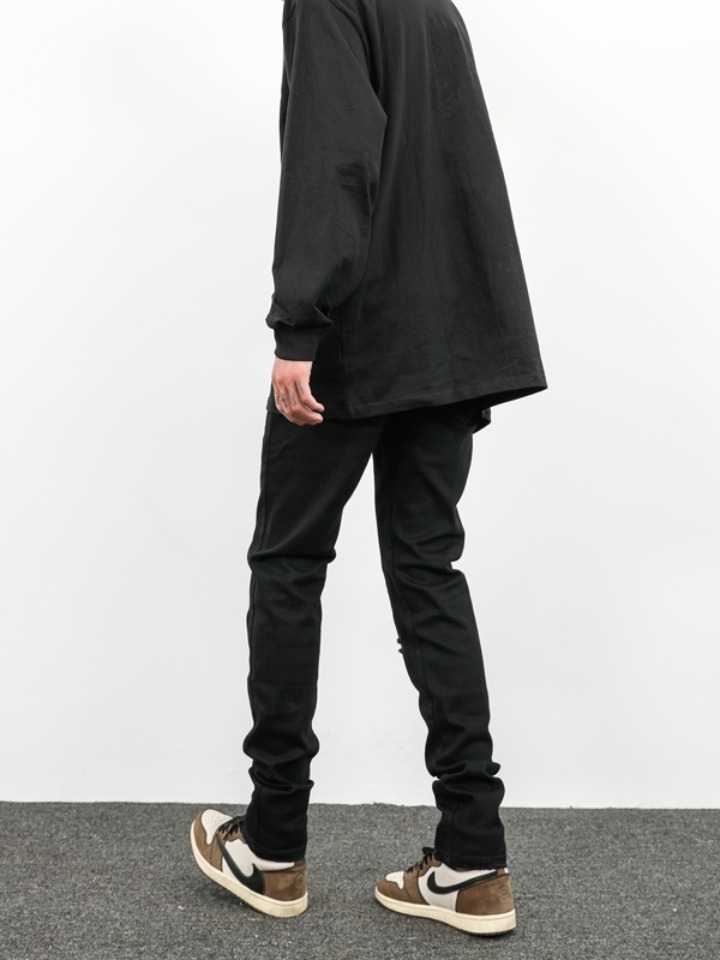这款牛仔裤的设计很有特色,高腰的版型,很好的修饰了身材比例,显瘦效果很棒,搭配一件T恤,就能轻松穿出时尚感。