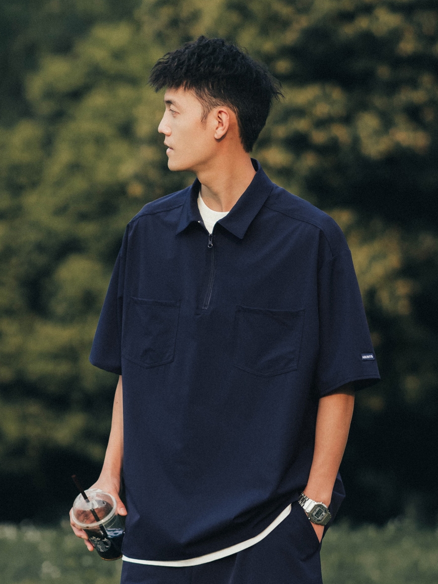 原宿的polo衫,它的版型是比较经典的宽松,简洁利落的轮廓线条,展现出都市的干练气场,结合复古风格的纯色底色,整体给人的感觉比较简约,展现出原汁原味的日系风。胸口设有翻盖口袋,提升层次感。