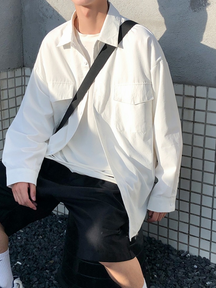 此款宽松长袖衬衫,胸前口袋,加上个性连接的长袖,配以休闲宽松的版型,尽显年轻人的个性不羁。宽大的弧形下摆,灵动飘逸,展现满满的时尚潮流气息。