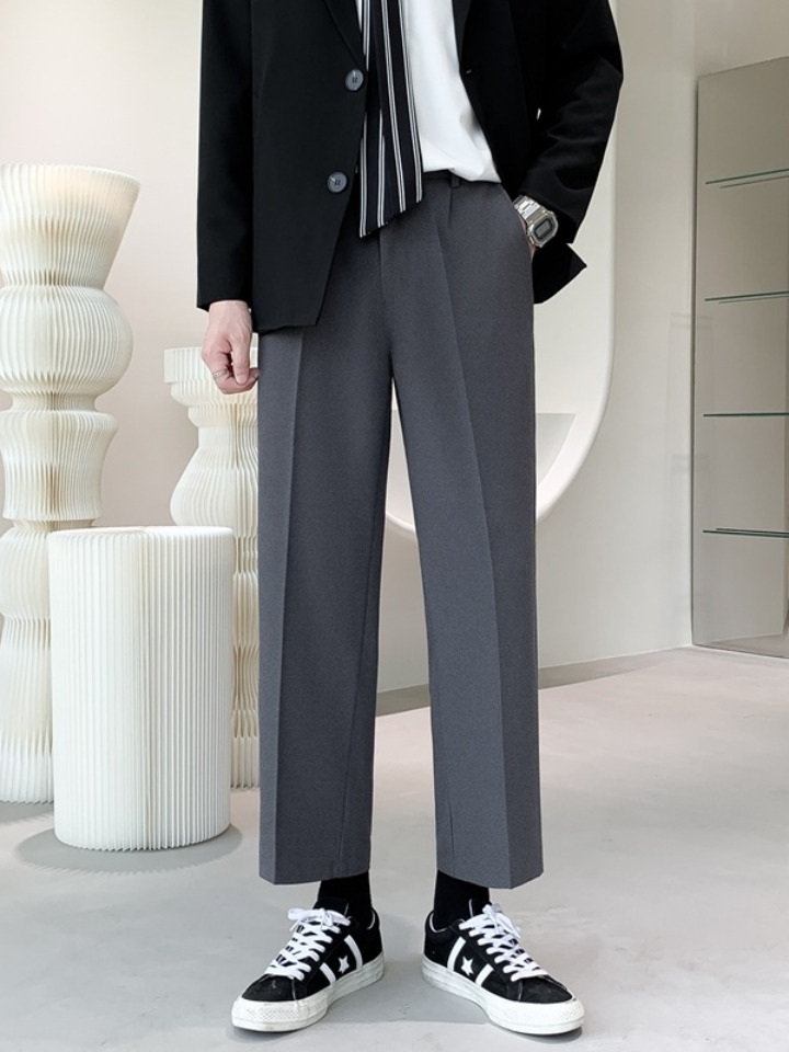 把一条原来显得正式的西装裤裁剪为时下流行的阔腿裤版型,流畅的线条,使整体廓形带给人一气呵成的印象。既保留了西裤的知性,又不失一份个性与时髦。