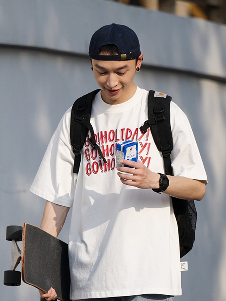 采用优质亲肤的纯棉面料精心打造,柔软舒适;经典的圆领设计,打造绝佳的穿着体验;衣面上小清新的印花打造日系潮男