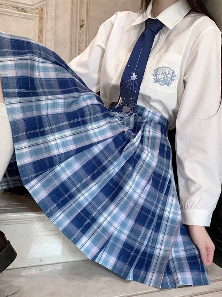 这个裙子叫卿问神明,是白色和浅蓝色深蓝色的主线组成,仿佛神圣不可侵犯的感觉,多看几眼就会沉沦下去。搭配白衬衣最合适不过,简直就是青春美少女。