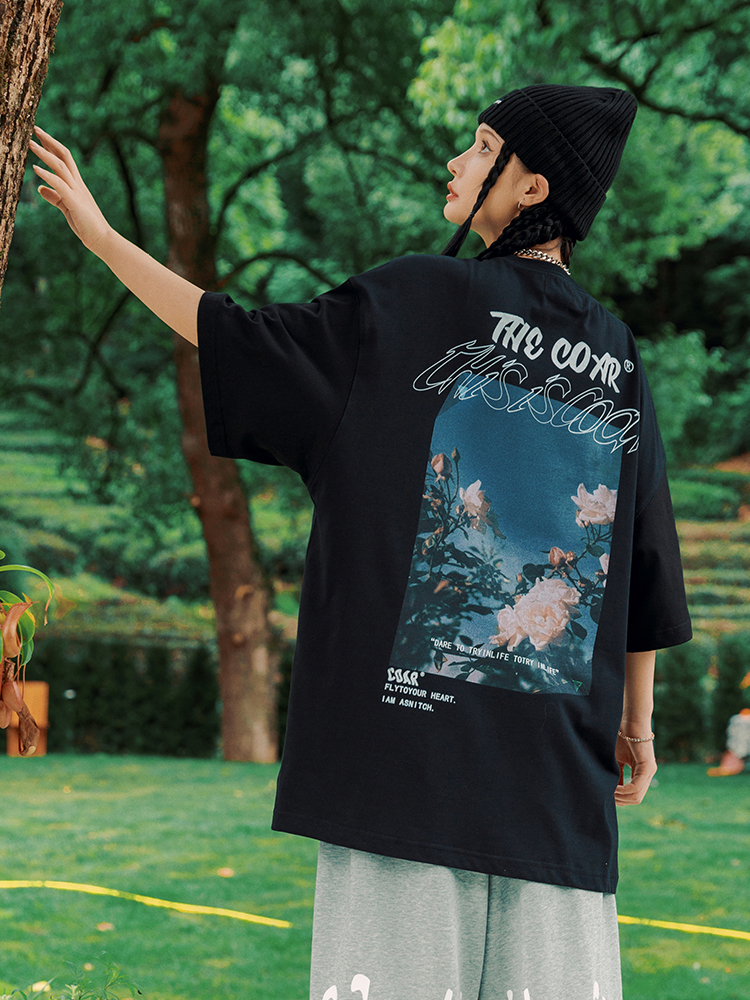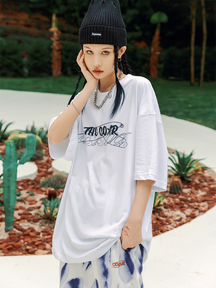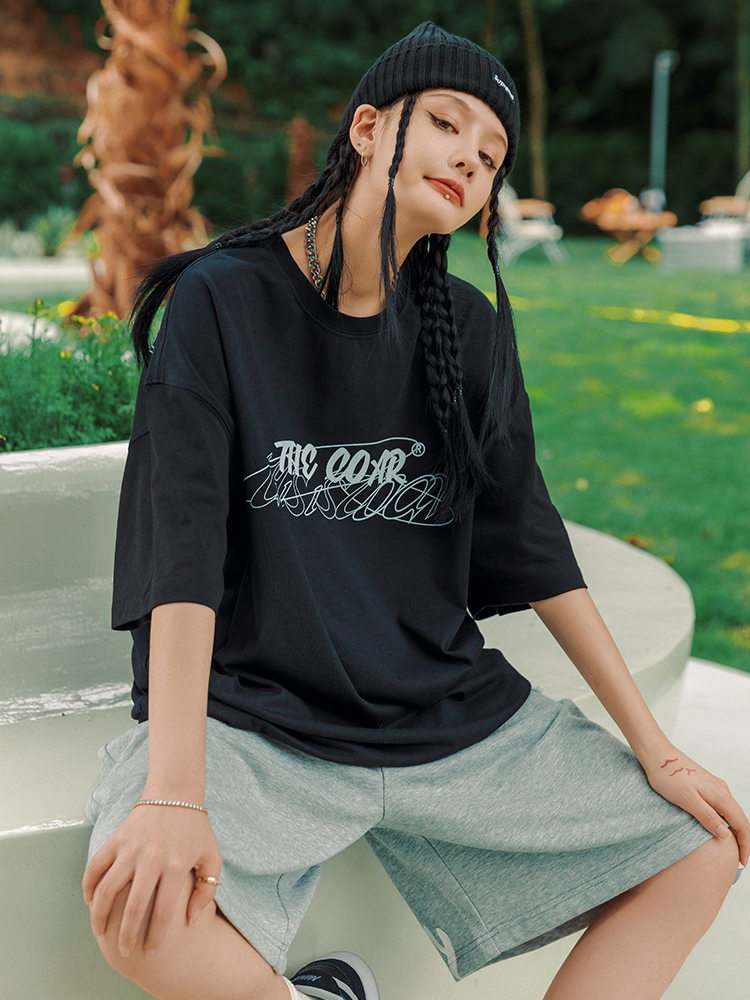 这件大廓型短袖T,宽松版型不拘身材,采用落肩式设计弱化肩线,削薄身形,很容易穿出纤瘦感,上身不软塌。