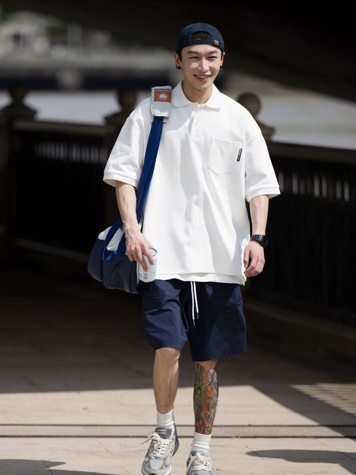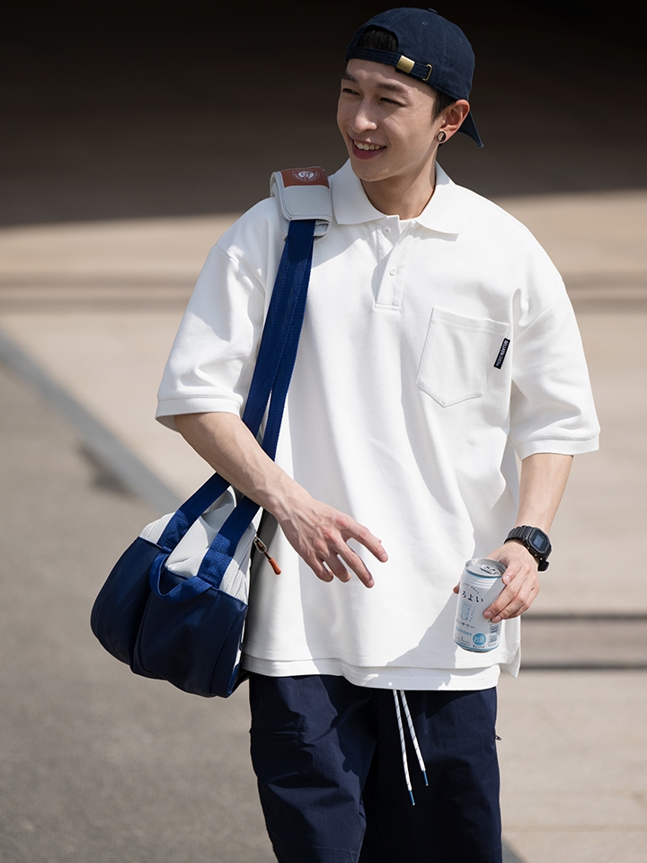 个性的polo衫,宽松的版型设计,上身随性自在不挑身材,搭配polo的翻领设计,尽显男人青春活力,经典的翻领设计加上黑白撞色,展现时尚感。宽松版型尽显复古风情,彰显气质魅力。